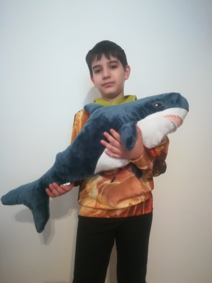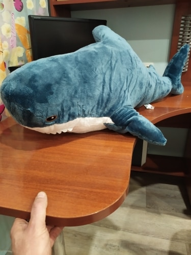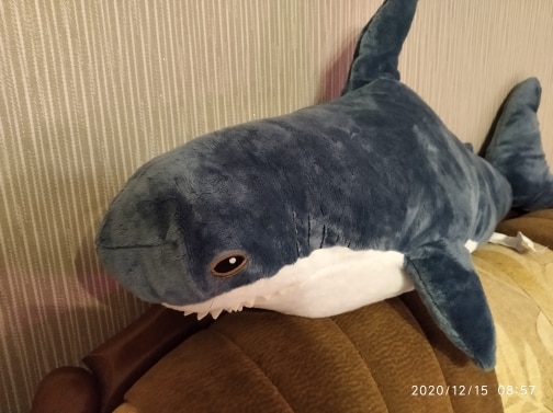 The shark of course children liked, squeaked and played for a long time, did not let go. But as for an adult, it is stuffed not tight, the size although it corresponds to the claimed, but .... She is skinny)))). I expected it to be wider, bigger. Teeth and eyes are made pretty, the shark itself is also generally pretty. We took a coupon at a discount, we do not regret buying, the main thing is that children like it. Ordered 11.11.2020, received by Christmas.