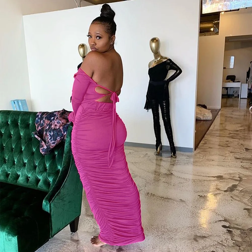 2019 autumn women Full Flare Sleeve Backless Slash Neck bodycon long maxi dress night club party 2 PCS dresses vestido GLG4661