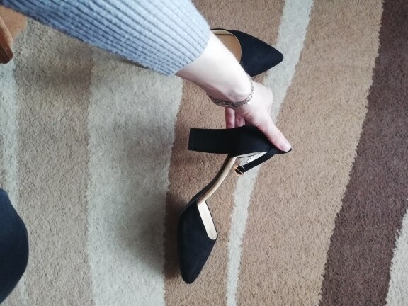 Came two weeks before St. Petersburg. The smell is sharp, but not scary. Oochen comfortable, heel and not big and not small, the size approached perfectly, the color matches, the strap is good, for such a price fire! For those who do not like booths, but I really want to be a lady. It looks great on the leg, and very comfortable, which is the most important thing. I did not communicate with the store.