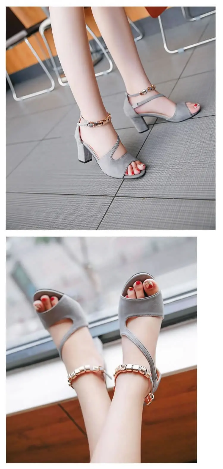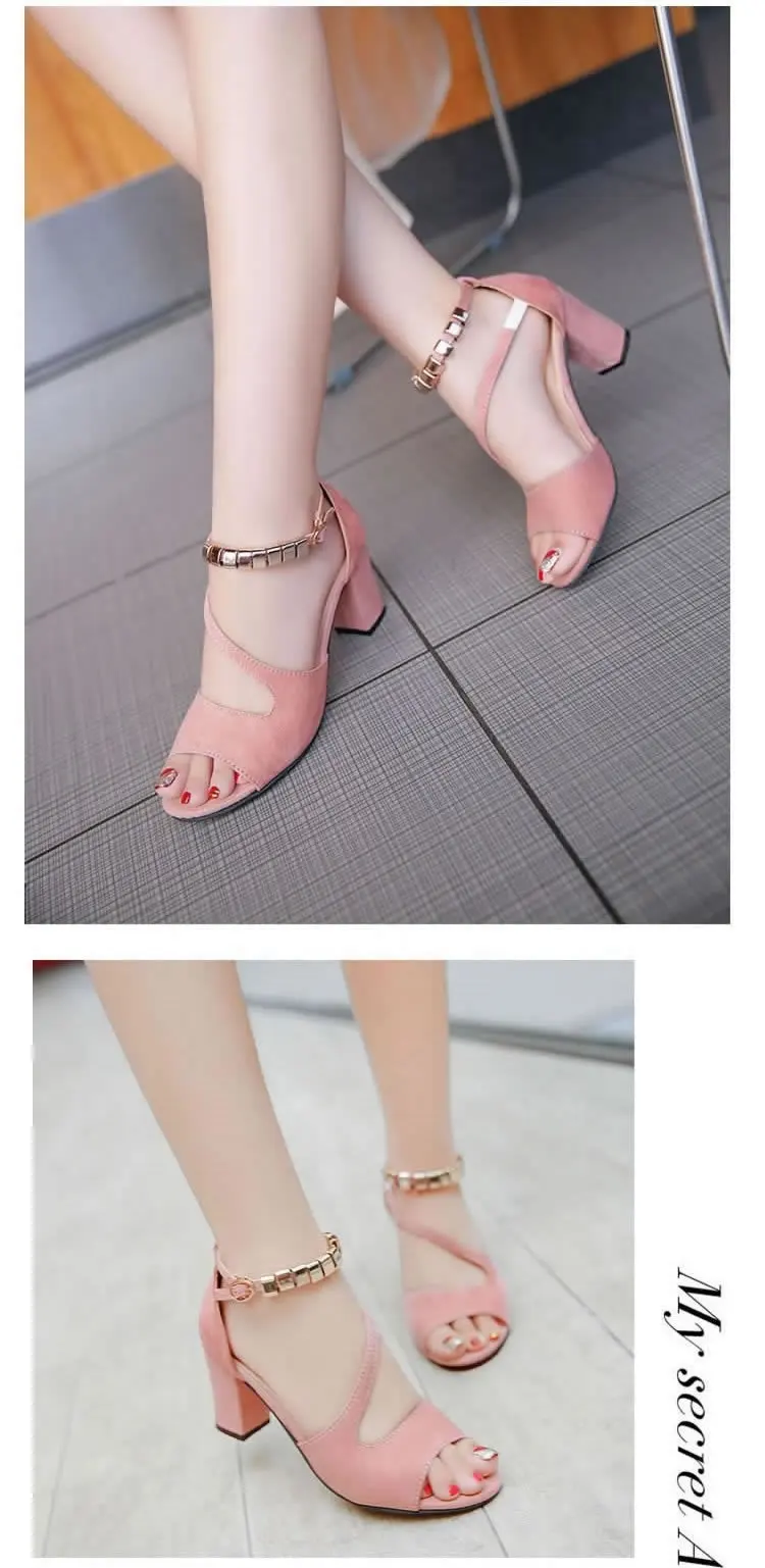 2020 fashion sexy fish mouth hollow Roman sandals thick with beaded high heels female summer Sexy female sandals