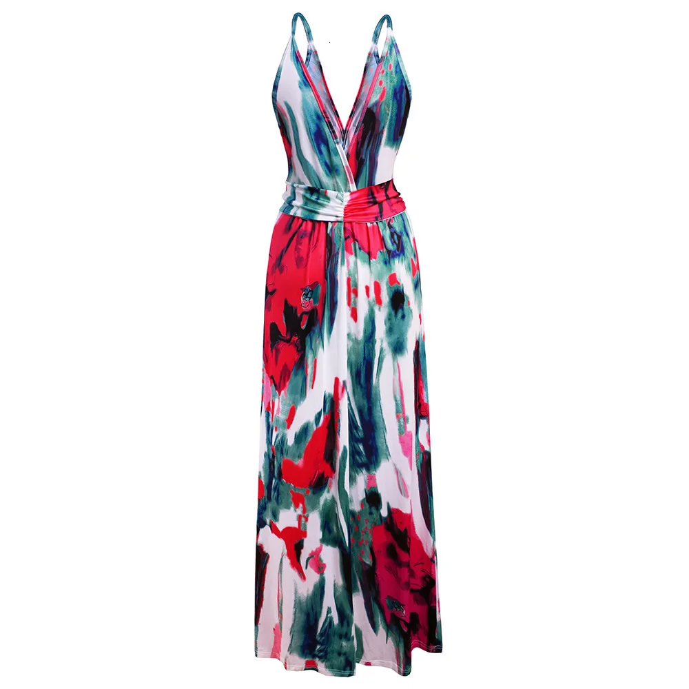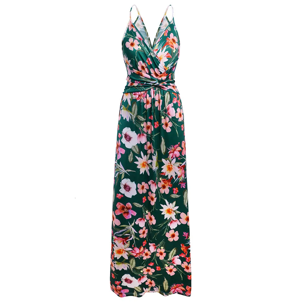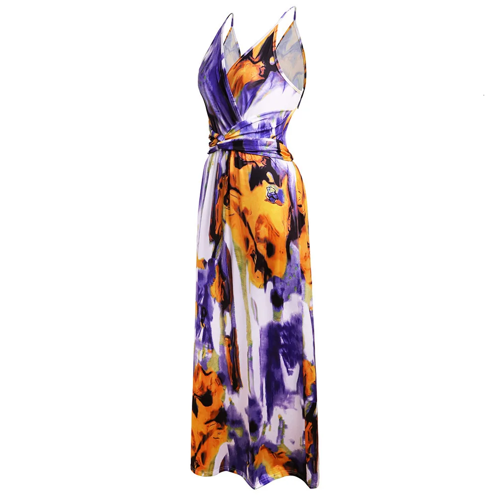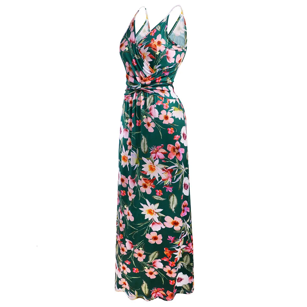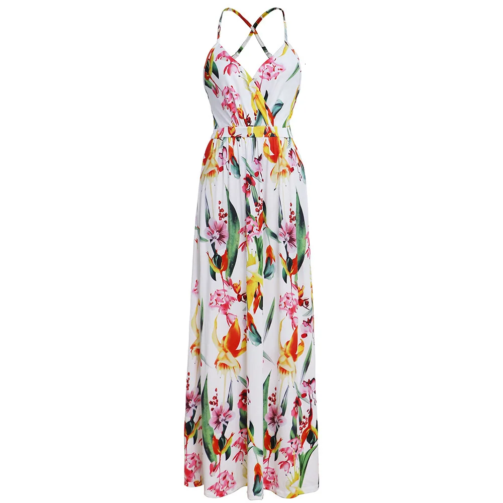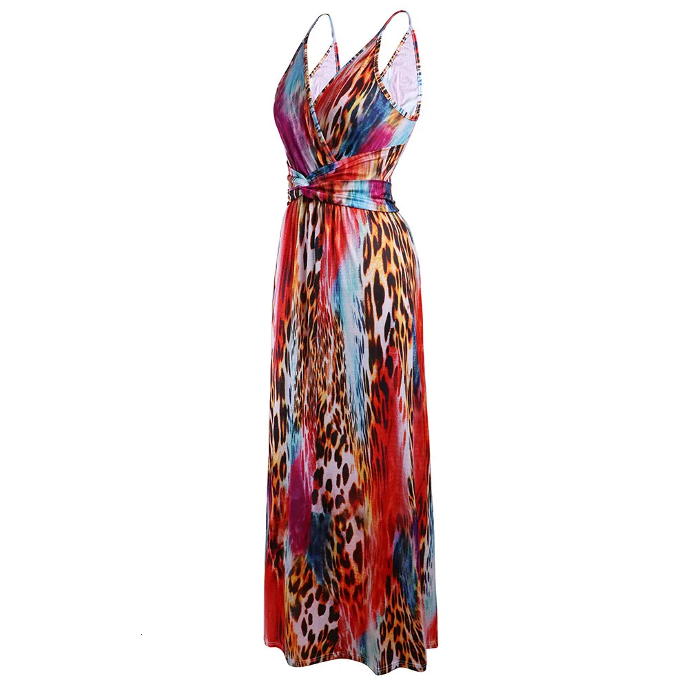2020 Multicolor Tropical Jungle Leaf Boho Long Dress Sling Cross Back Women V neck Party Night Elegant Sexy Maxi Summer Dresses