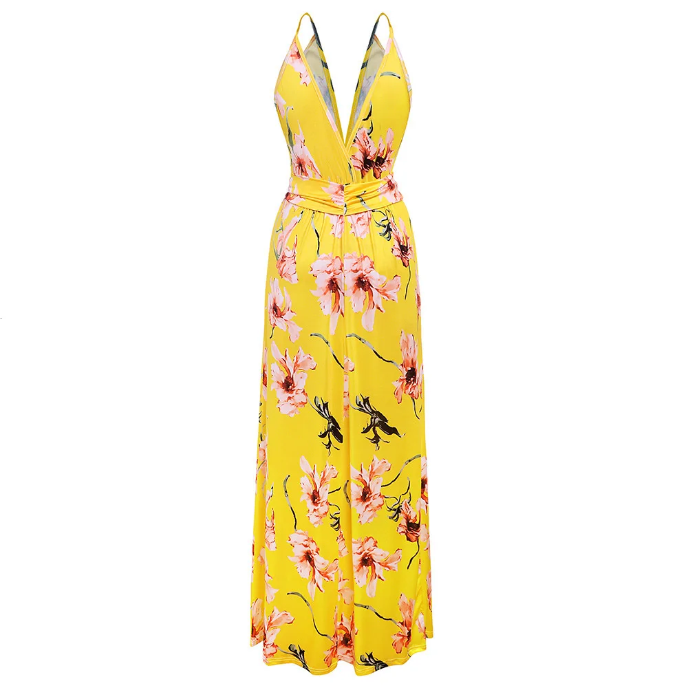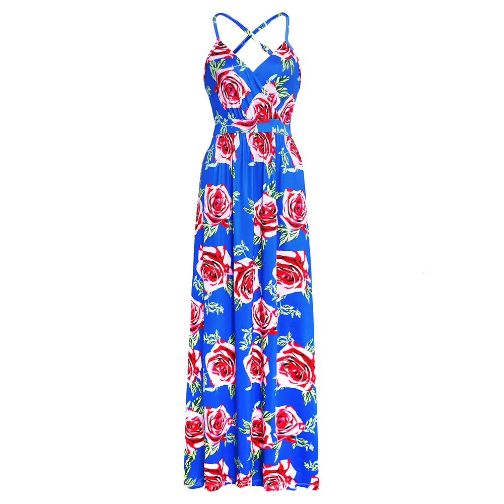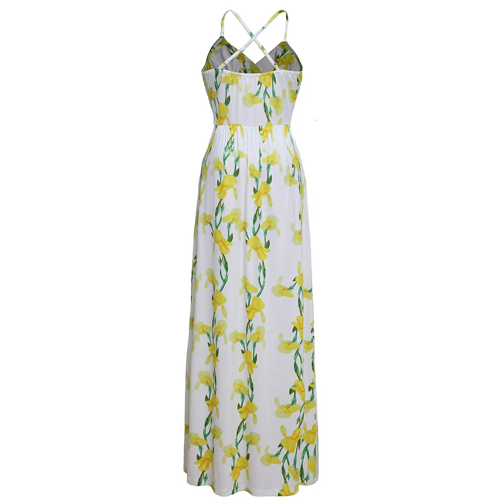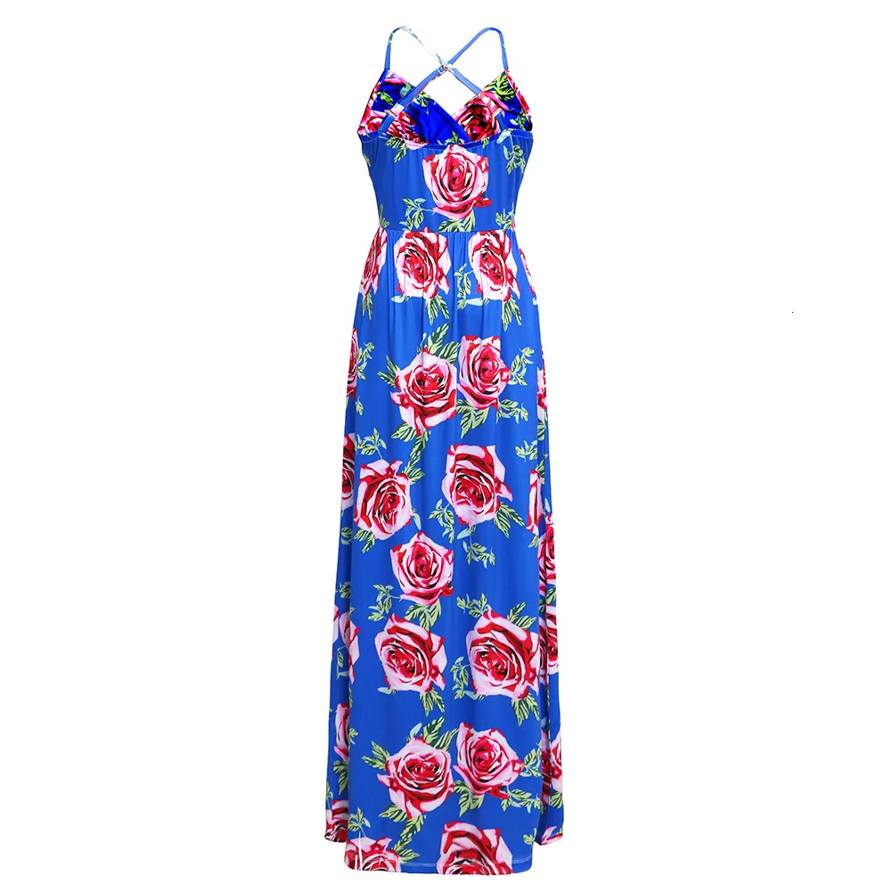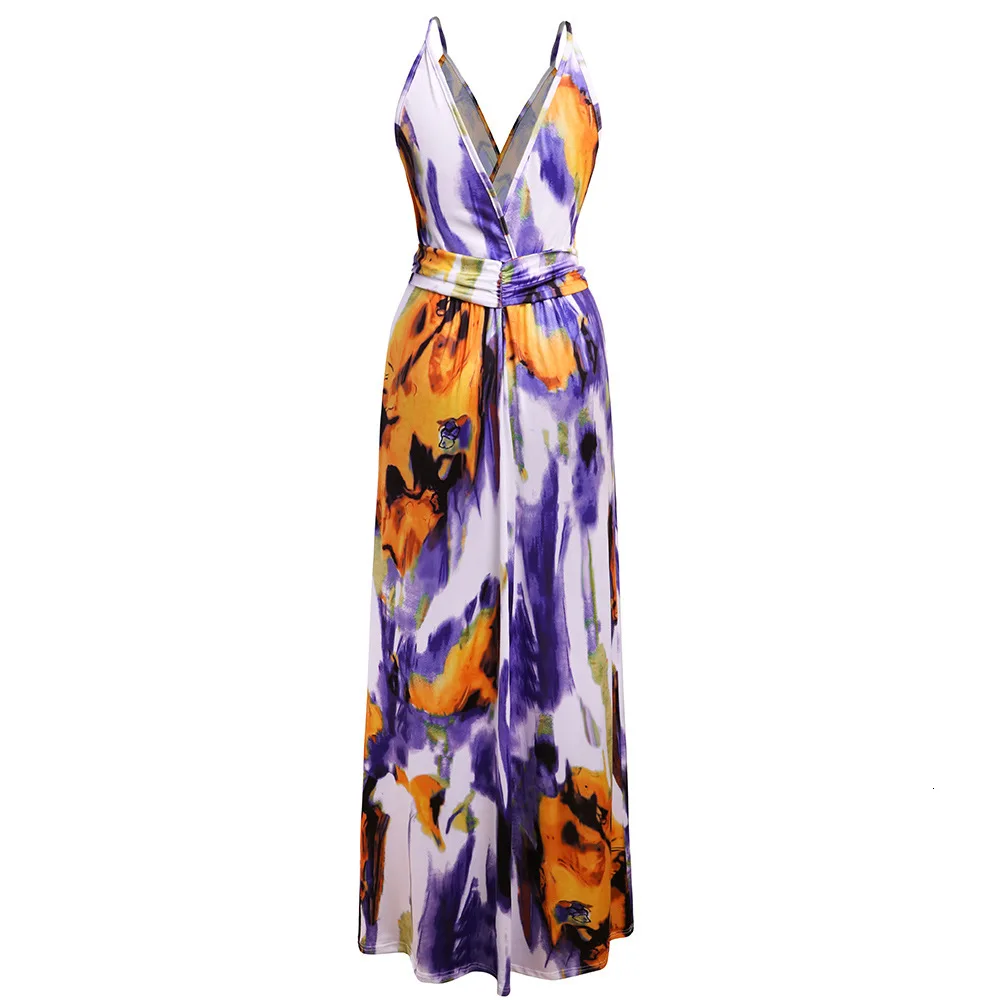 2020 Multicolor Tropical Jungle Leaf Boho Long Dress Sling Cross Back Women V neck Party Night Elegant Sexy Maxi Summer Dresses