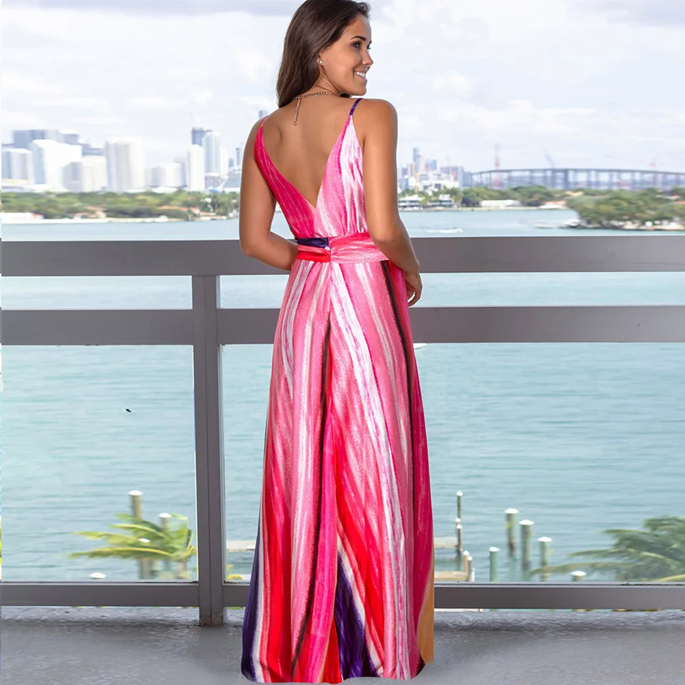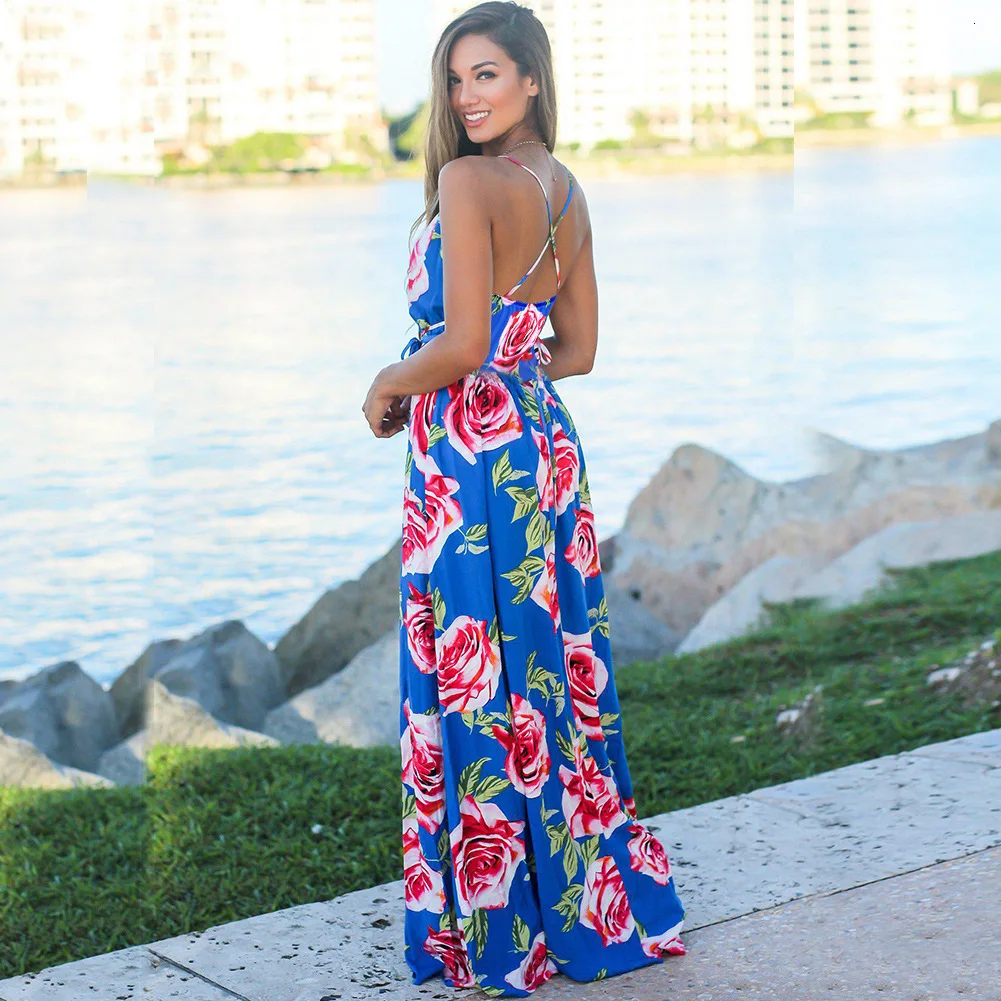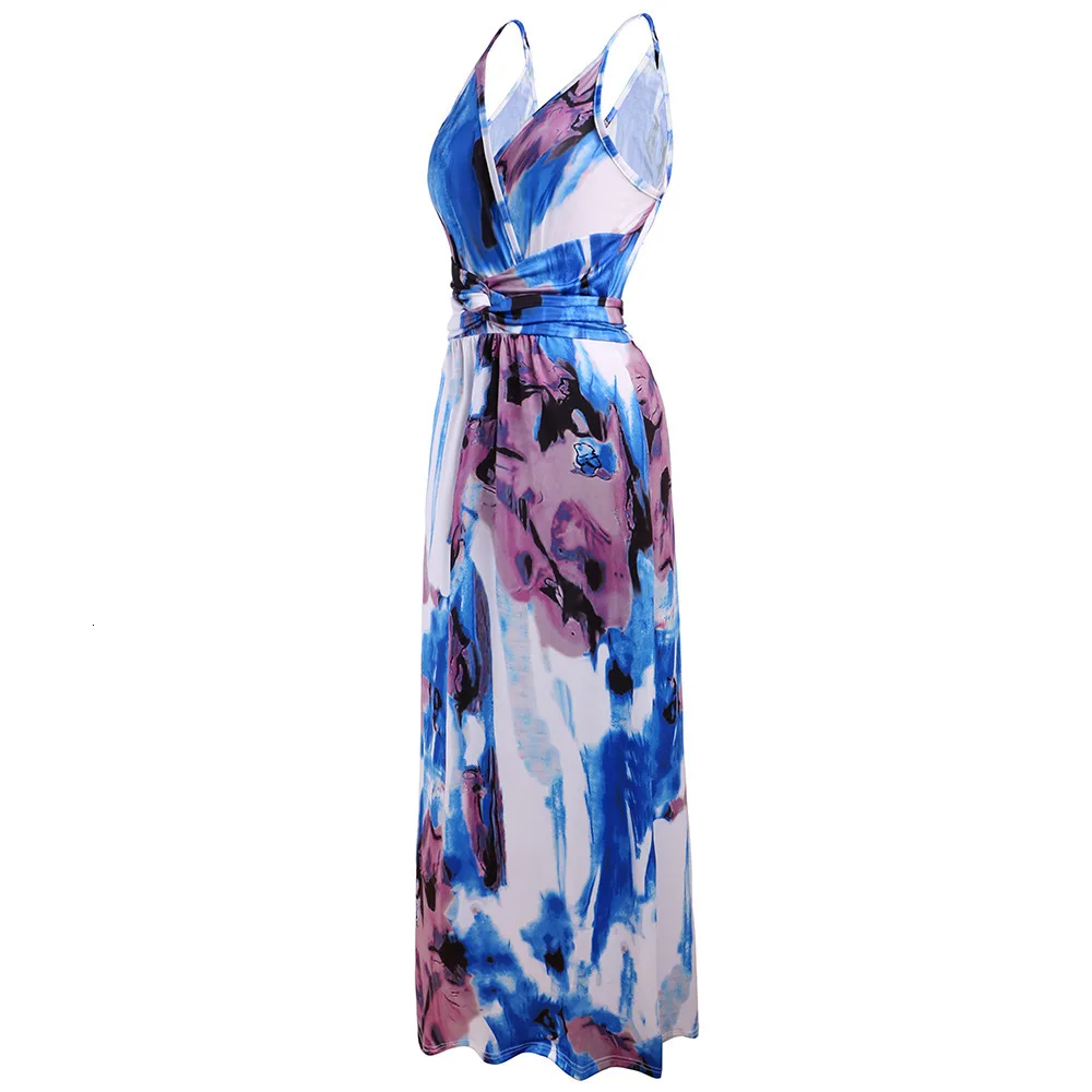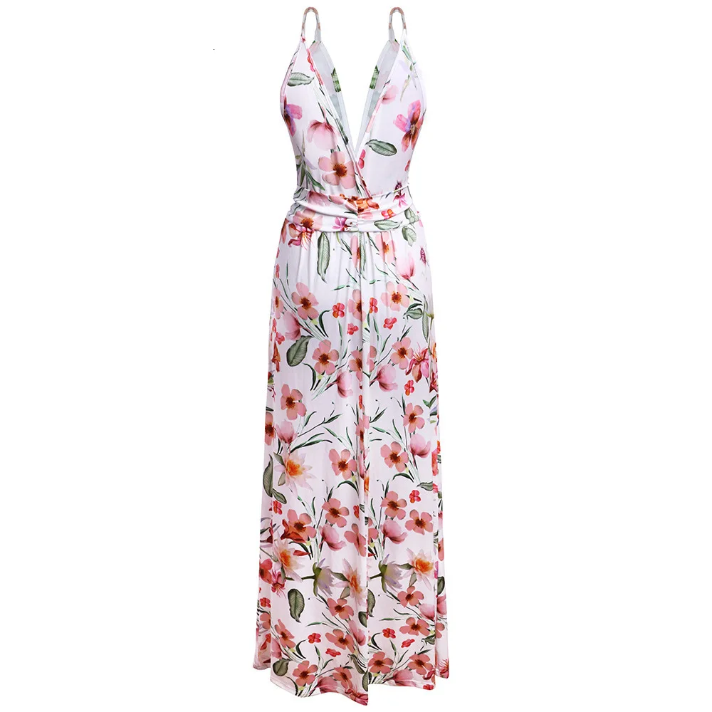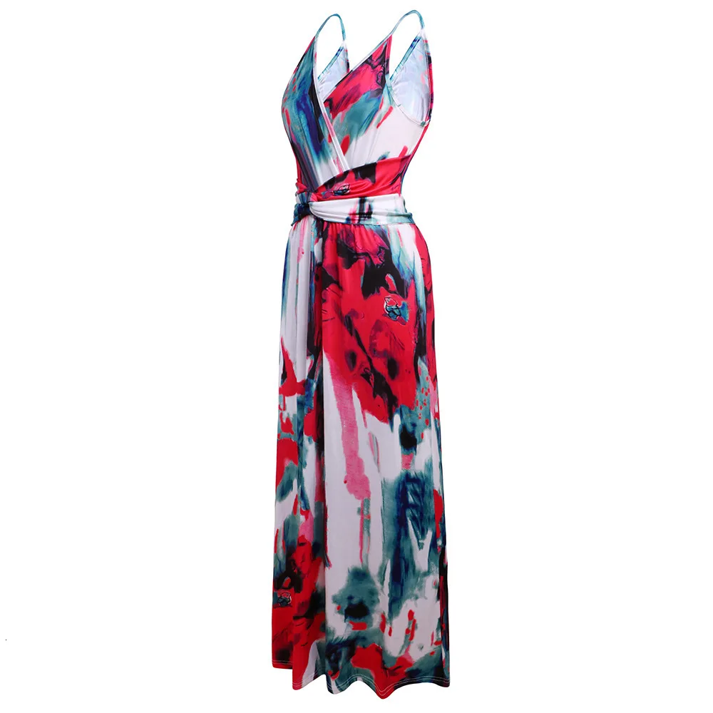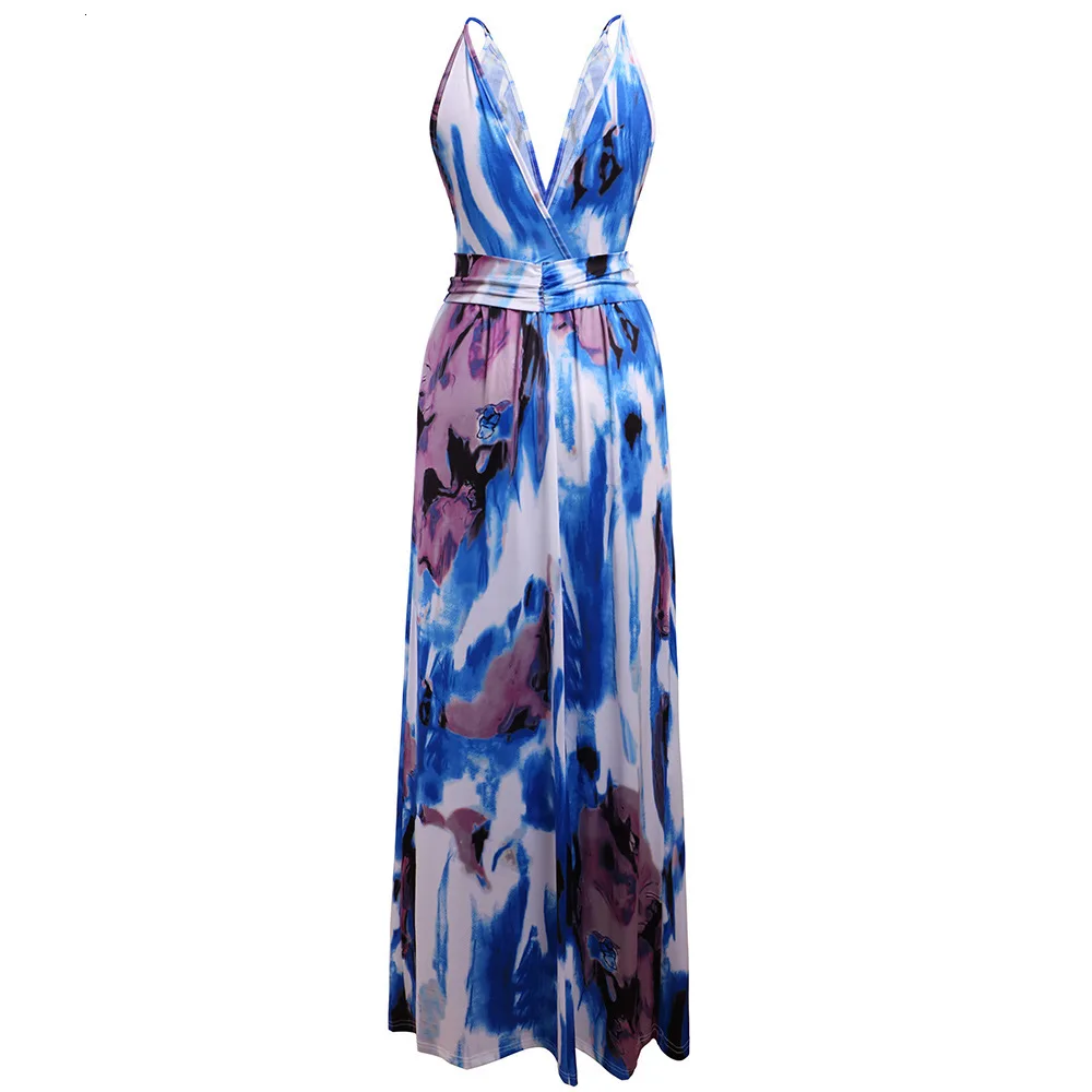2020 Multicolor Tropical Jungle Leaf Boho Long Dress Sling Cross Back Women V neck Party Night Elegant Sexy Maxi Summer Dresses