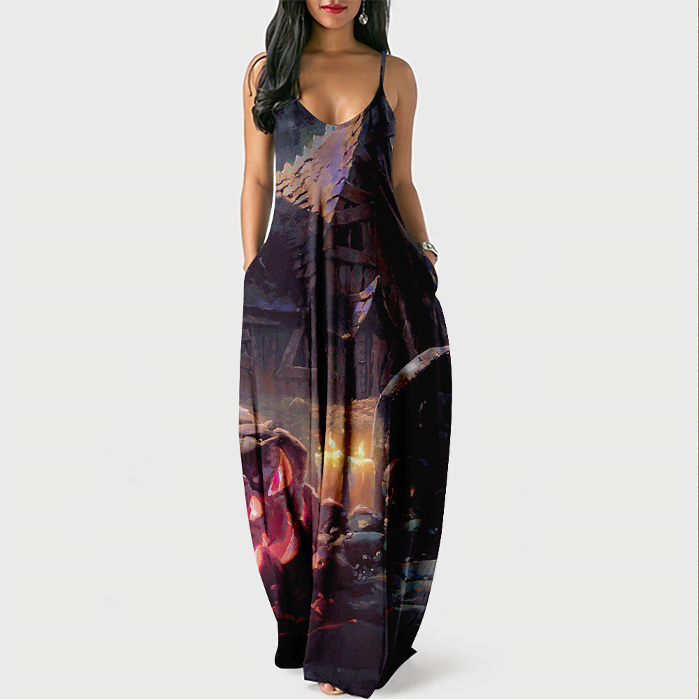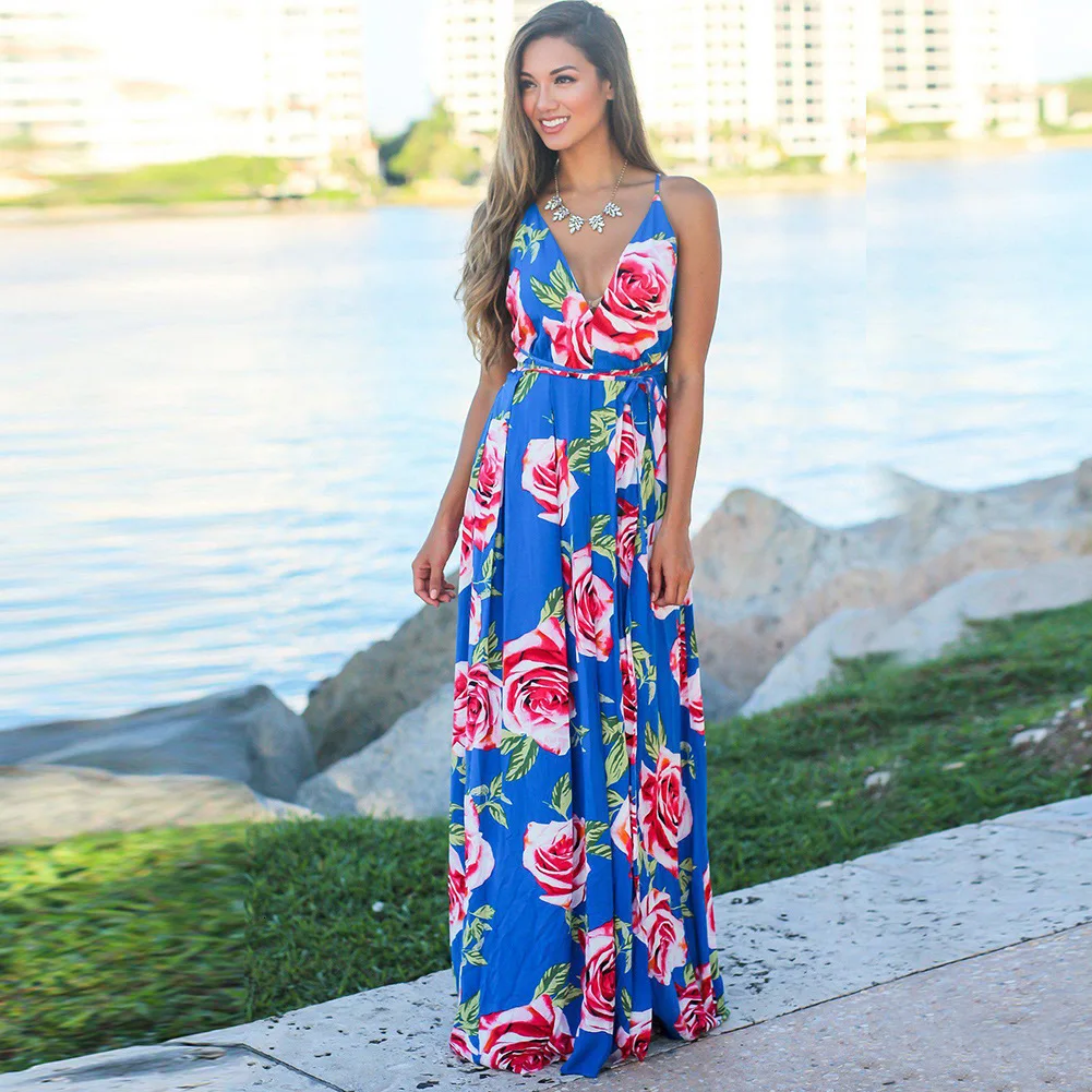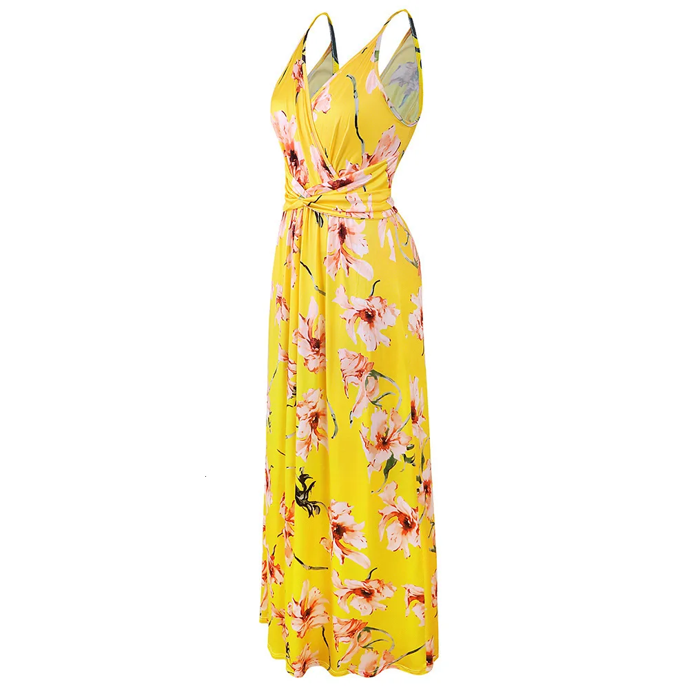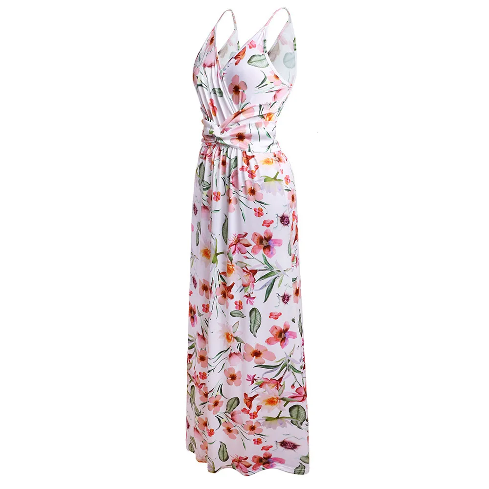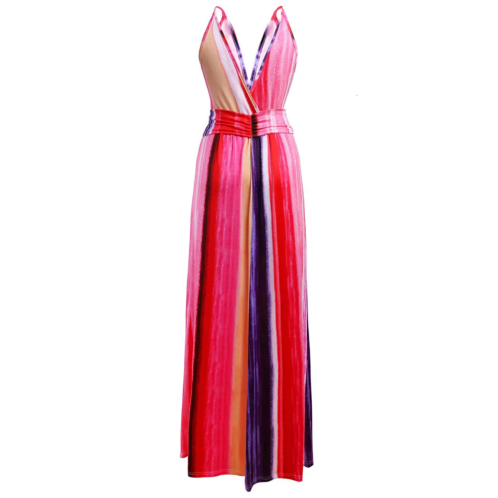 2020 Multicolor Tropical Jungle Leaf Boho Long Dress Sling Cross Back Women V neck Party Night Elegant Sexy Maxi Summer Dresses