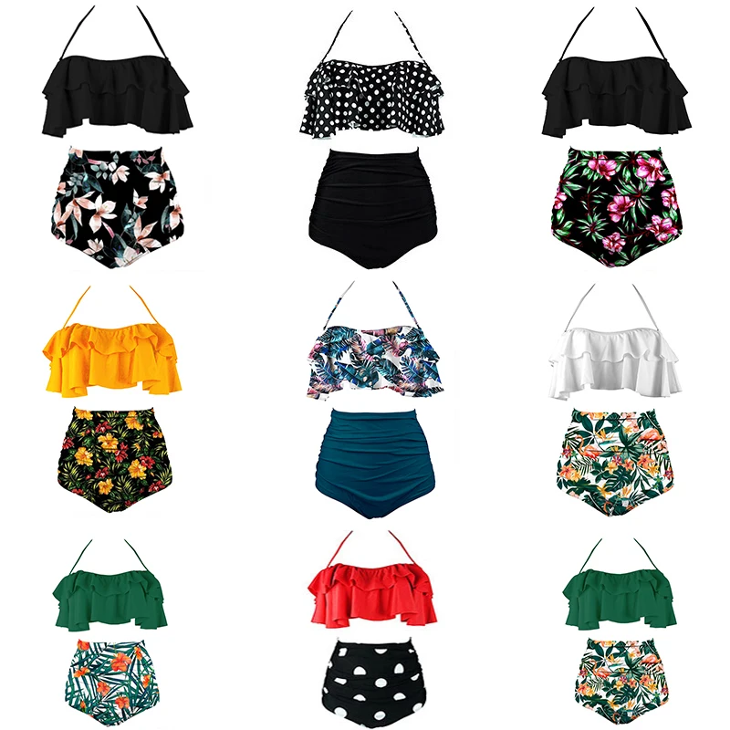 2020 New Bikinis Women Swimsuit High Waist Bathing Suit Plus Size Swimwear Push Up Bikini Set Vintage Beach Wear Biquini