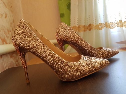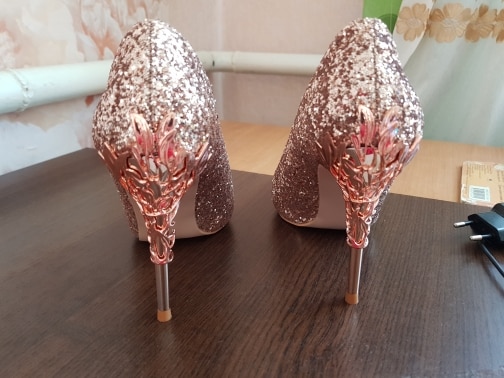 I ordered shoes for a wedding. Made very well. I'm biased about Ali's shoes, but I'm beyond praise. Sequins do not crumble!!(which is very important for me)!!! But apparently because the new ones are narrow. I ordered 6,7-this is 37 size. I have somewhere 36-36.5 and they are narrow to me. But I think in my socks like a hair dryer will warm up and will be all good. Made neatly and in appearance beautiful. We're not going very high.