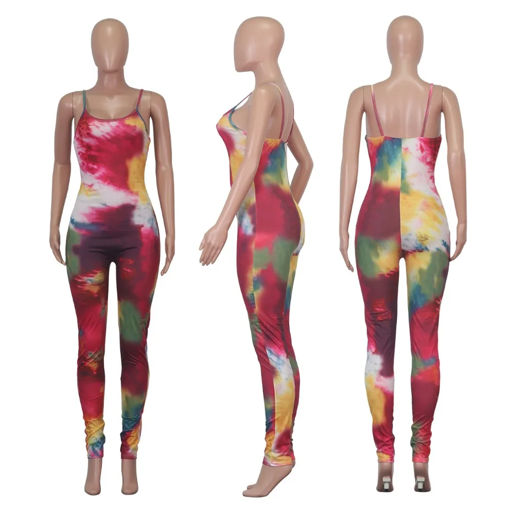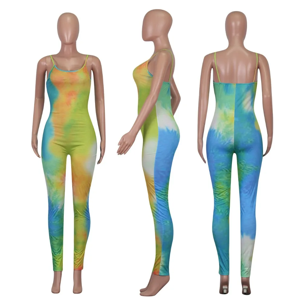 2020 Summer Women Jumpsuits Street Rompers Strap Draped Gradient Print Sexy Night Club Party Bandage One Piece Outfits GL543