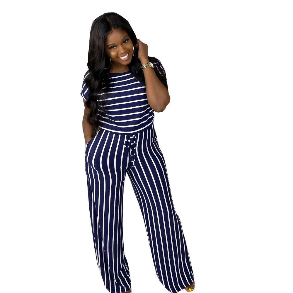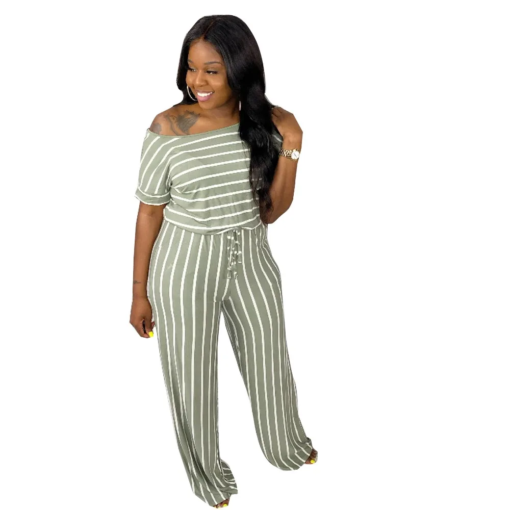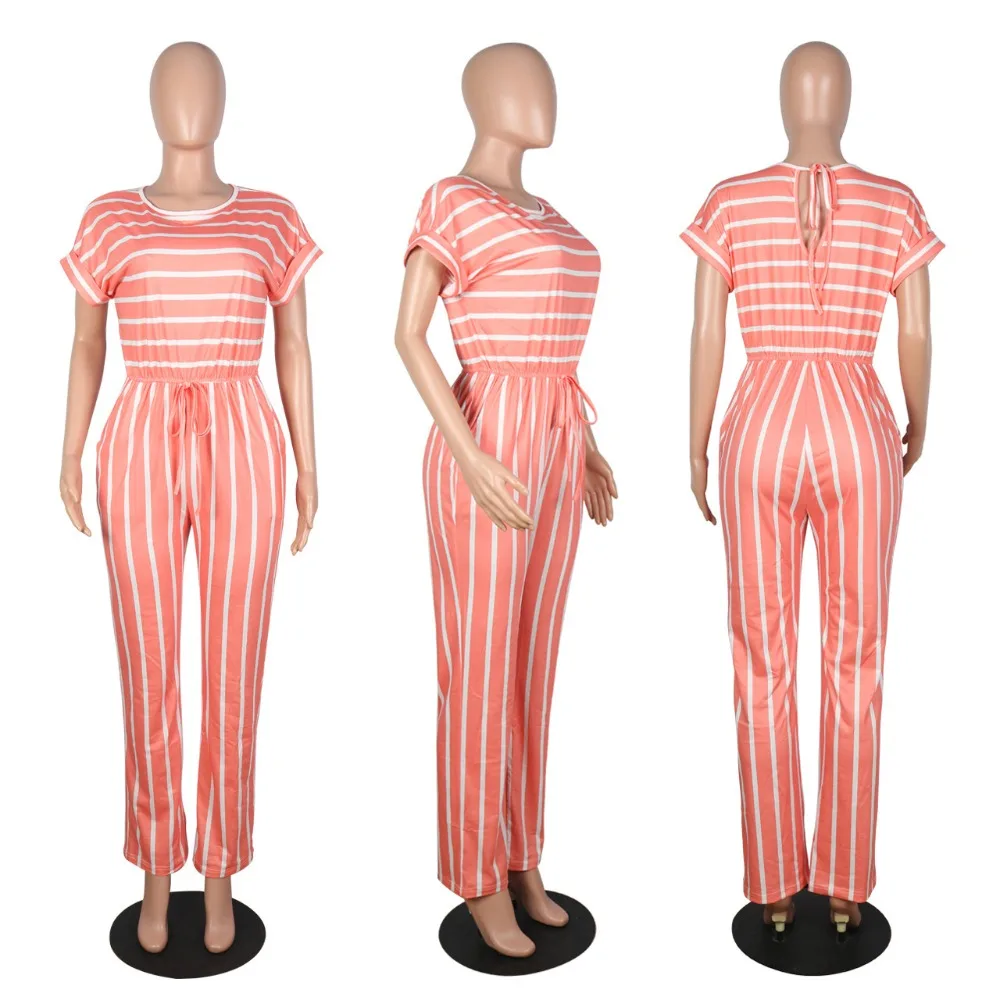 2020 Summer Women Jumpsuits Street Rompers Striped Print Short Sleeve Sexy Night Club Party Bandage One Piece Outfits GL1068
