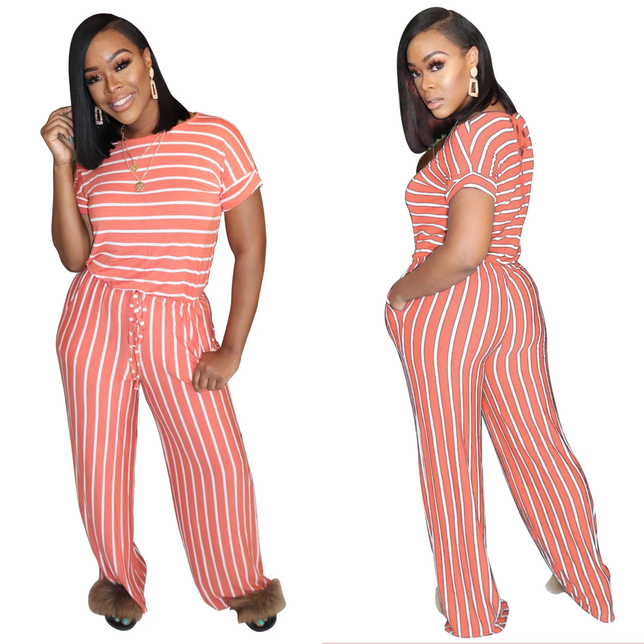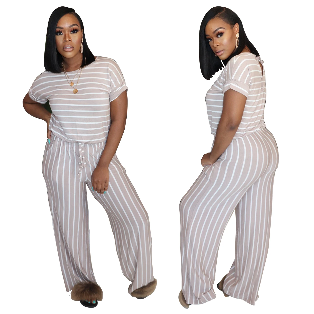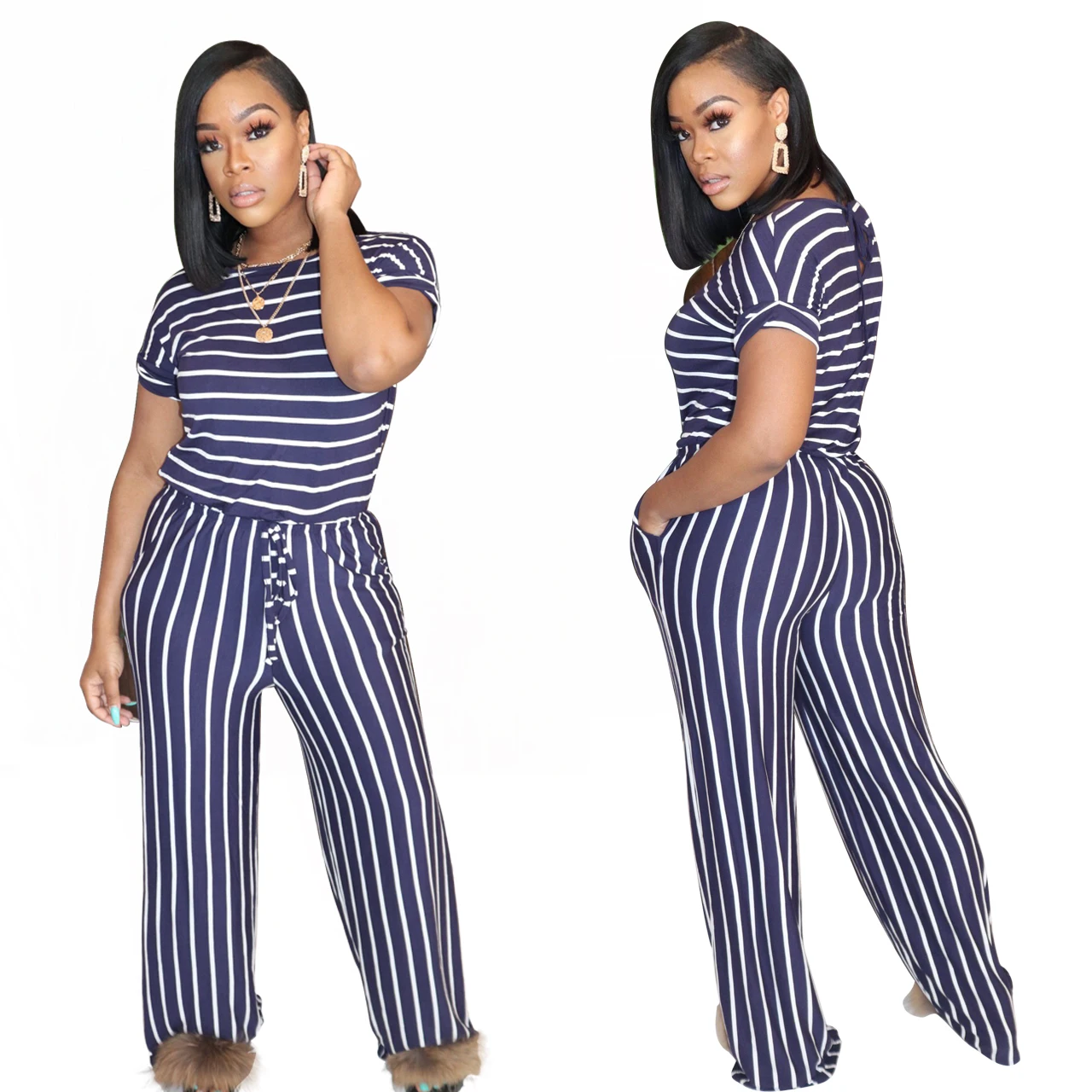 2020 Summer Women Jumpsuits Street Rompers Striped Print Short Sleeve Sexy Night Club Party Bandage One Piece Outfits GL1068