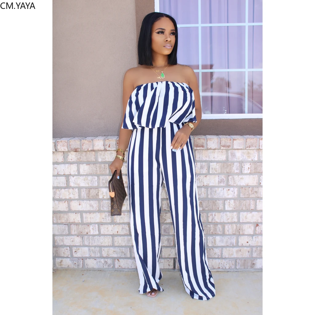 2020 Summer Women Sleeveless Jumpsuits Strapless Striped Print Rompers Backless Sexy Night Club Party One Piece Outfits GL5005