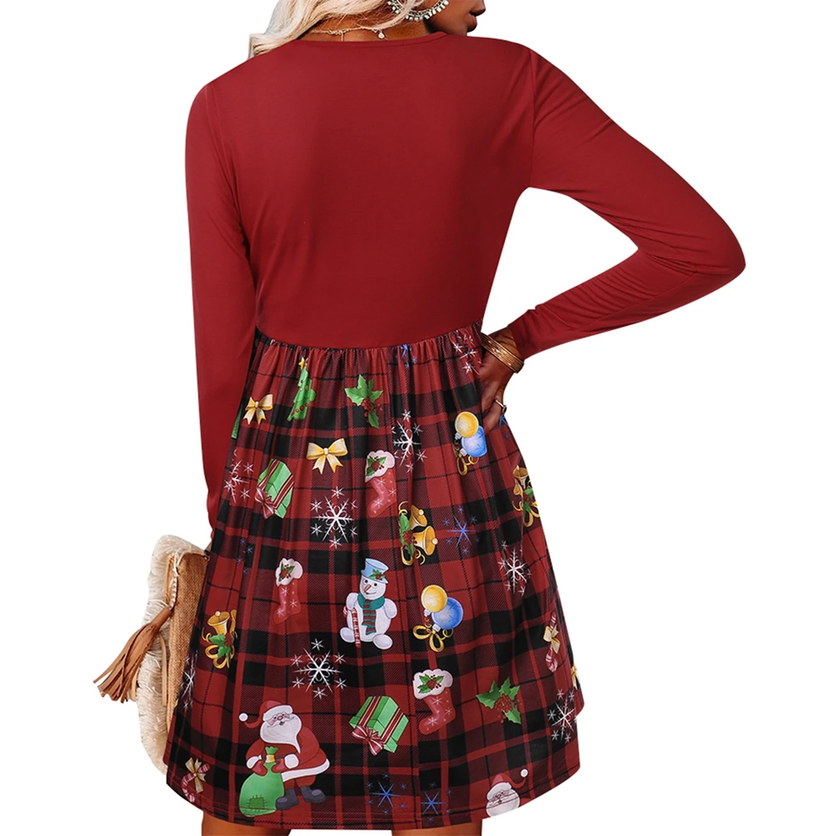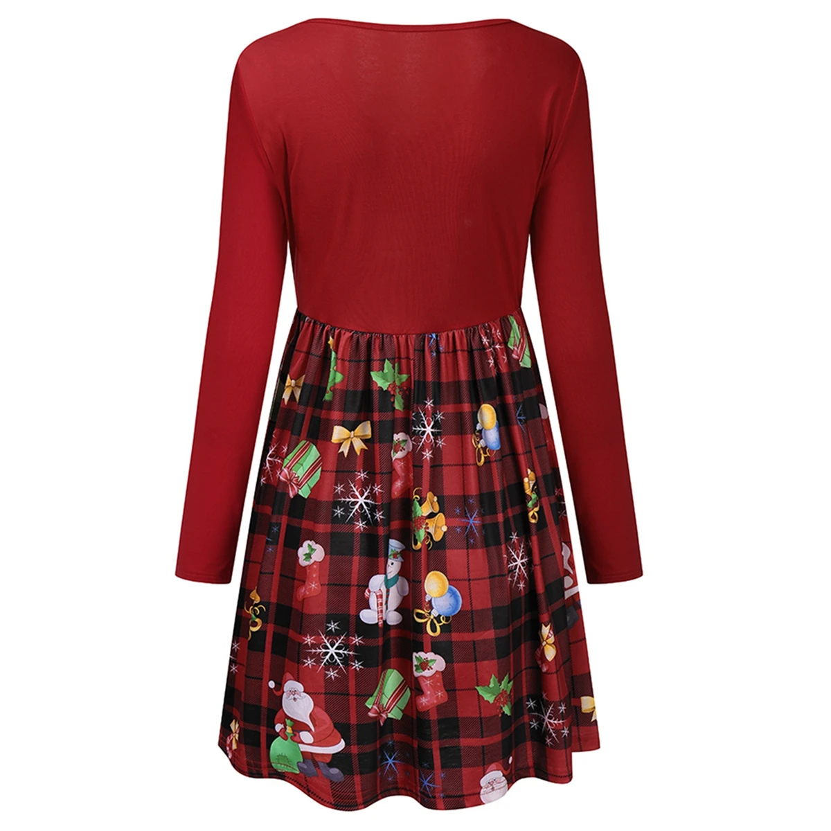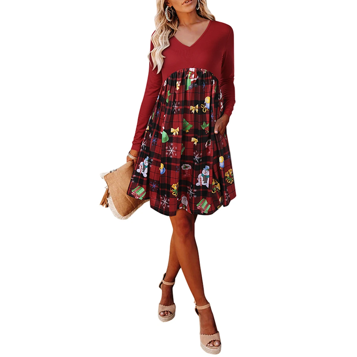 2020 Winter Womens Dress Long Sleeve V Neck Loose Casual Dress Cute Santa Claus Printed Christmas Dresses A-line Dress Vestidos