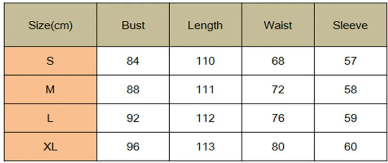 S Bust: 84 Length: 110 Waist: 68 Sleeve: 57