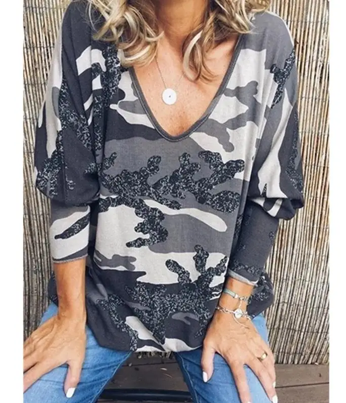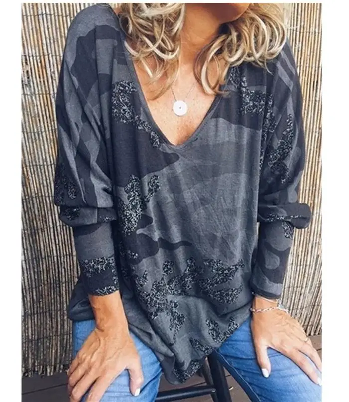 2020 Women Shirts Plus Size Long Sleeve Autumn Blouse Fashion V-neck Print Elegant Shirt Loose Streetwear Tops Blusa 5XL