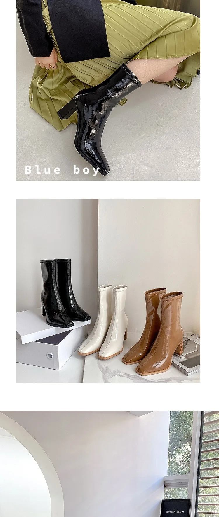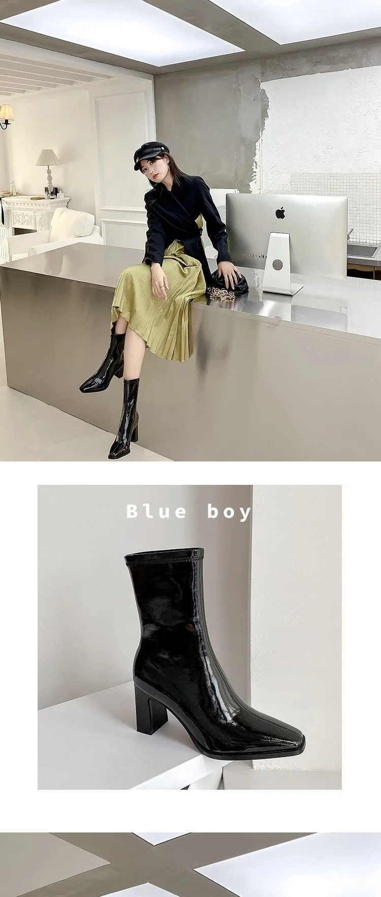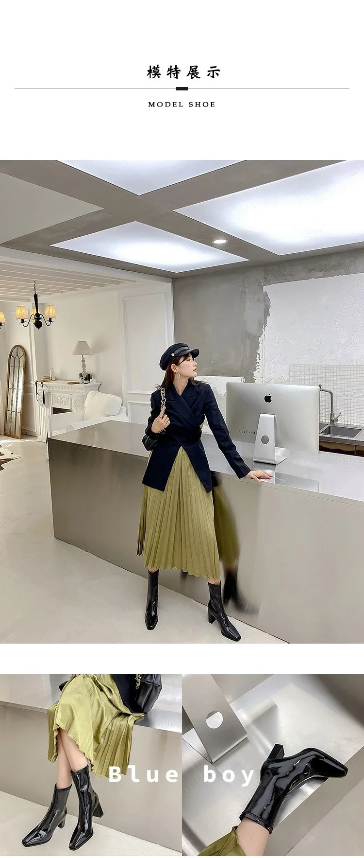 2021 autumn and winter new European and American medium boots high heels square head cover feet soft fashion boots wholesale