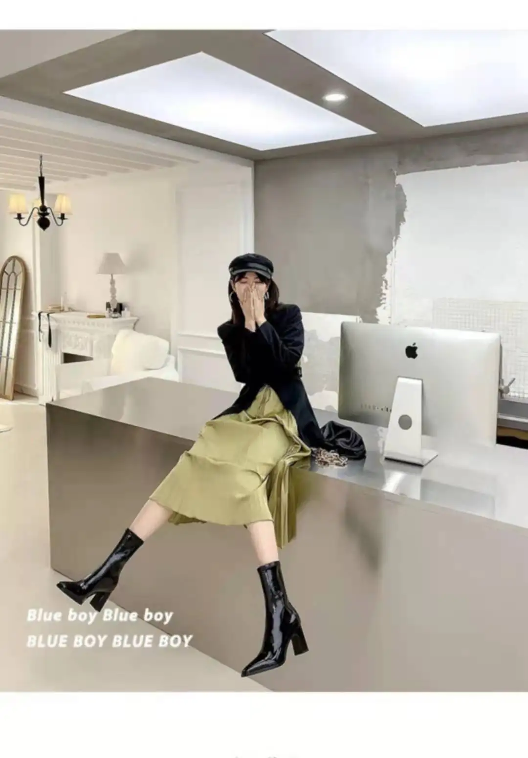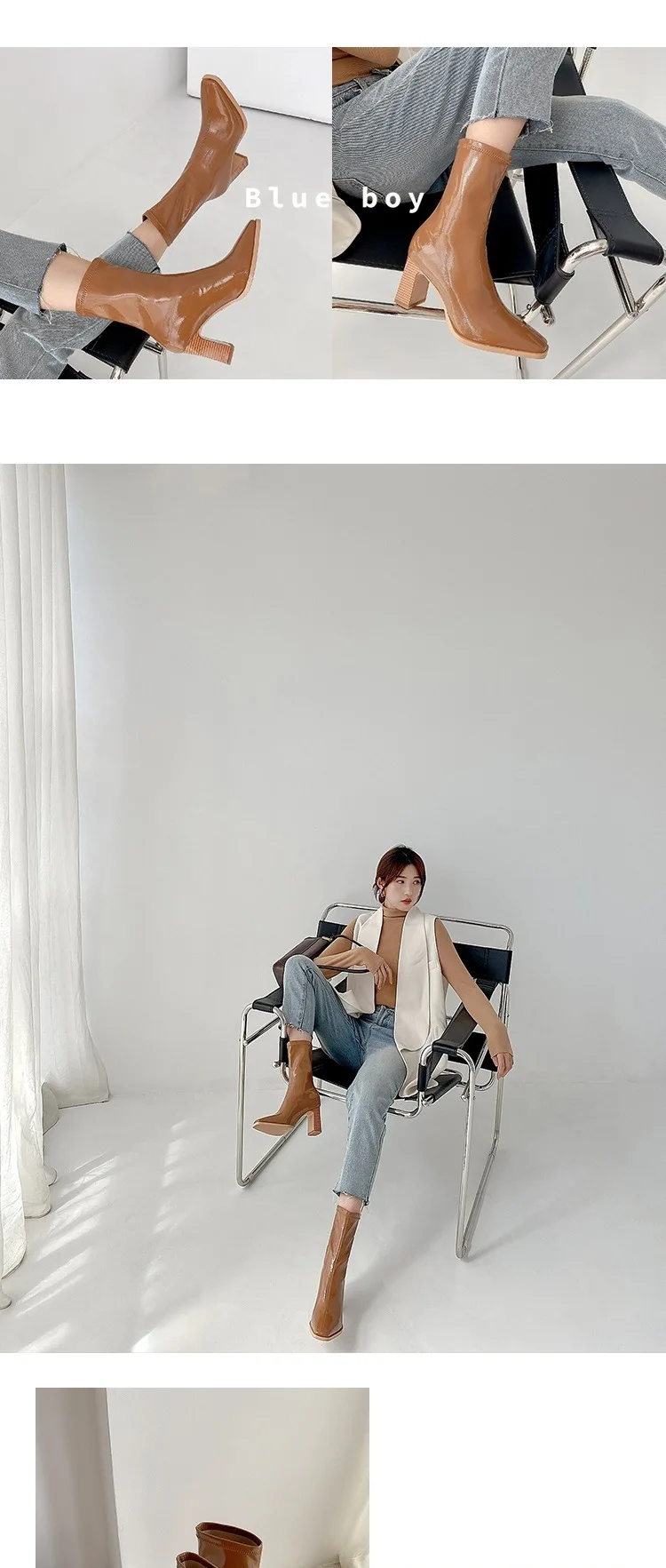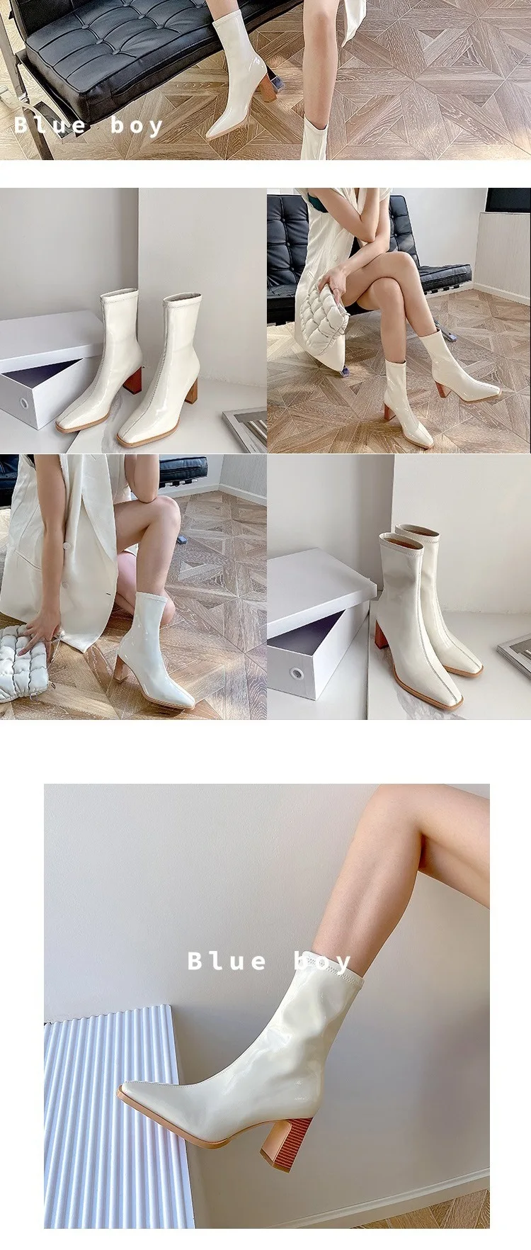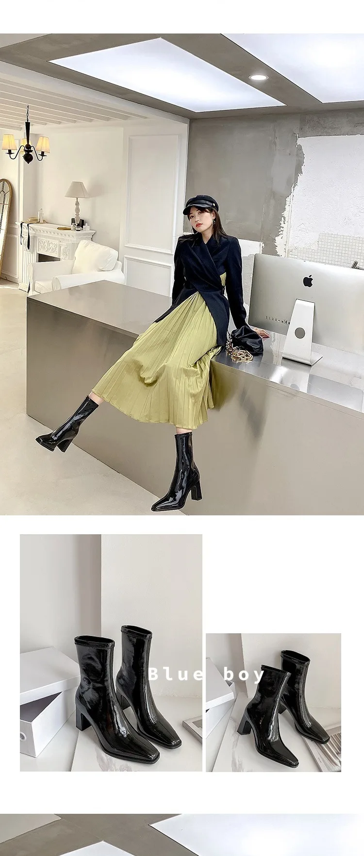 2021 autumn and winter new European and American medium boots high heels square head cover feet soft fashion boots wholesale