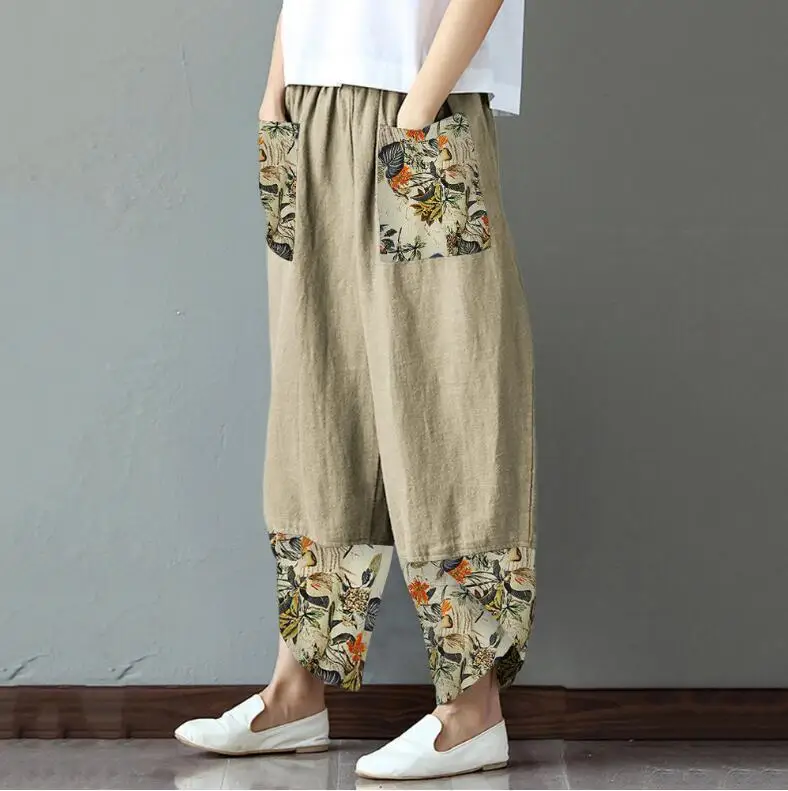 2021 Autumn Long Pants Women Fashion Casual High Waist Elastic Waist Straight Loose Pants Pockets Loose Ladies Cargo Pantalon