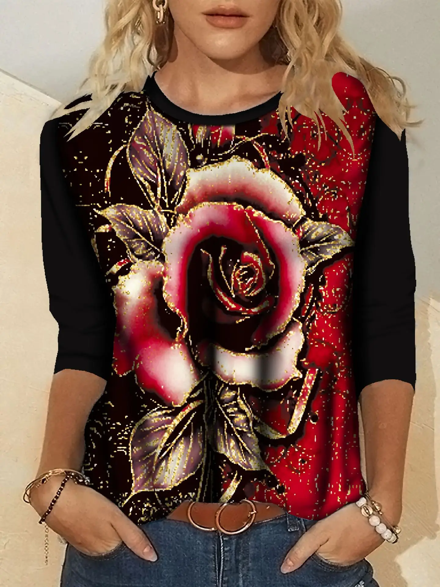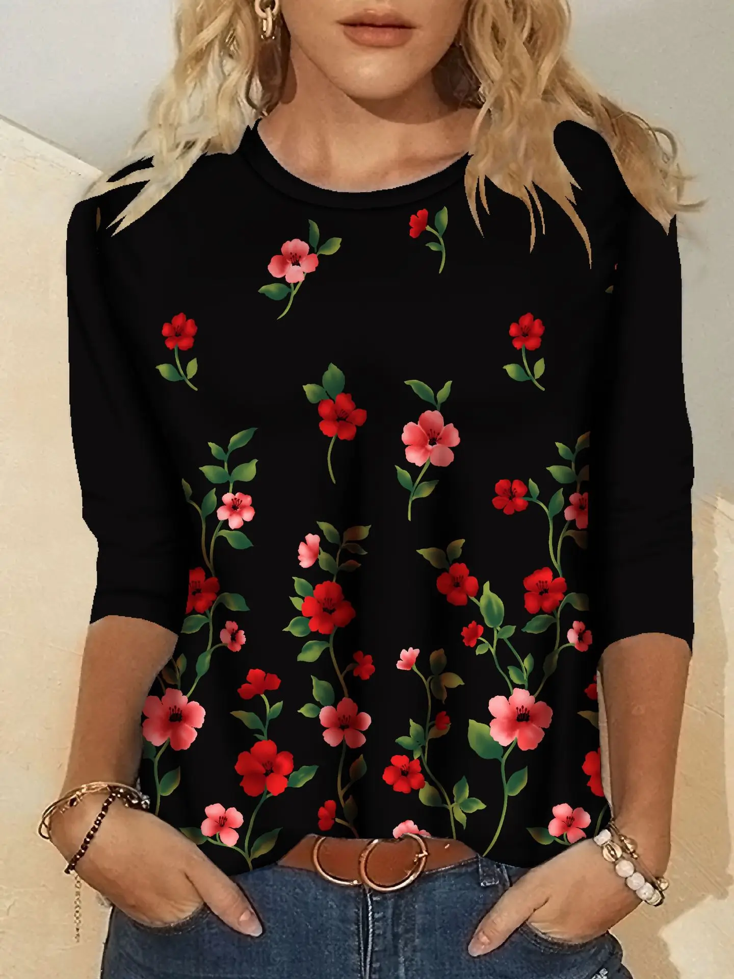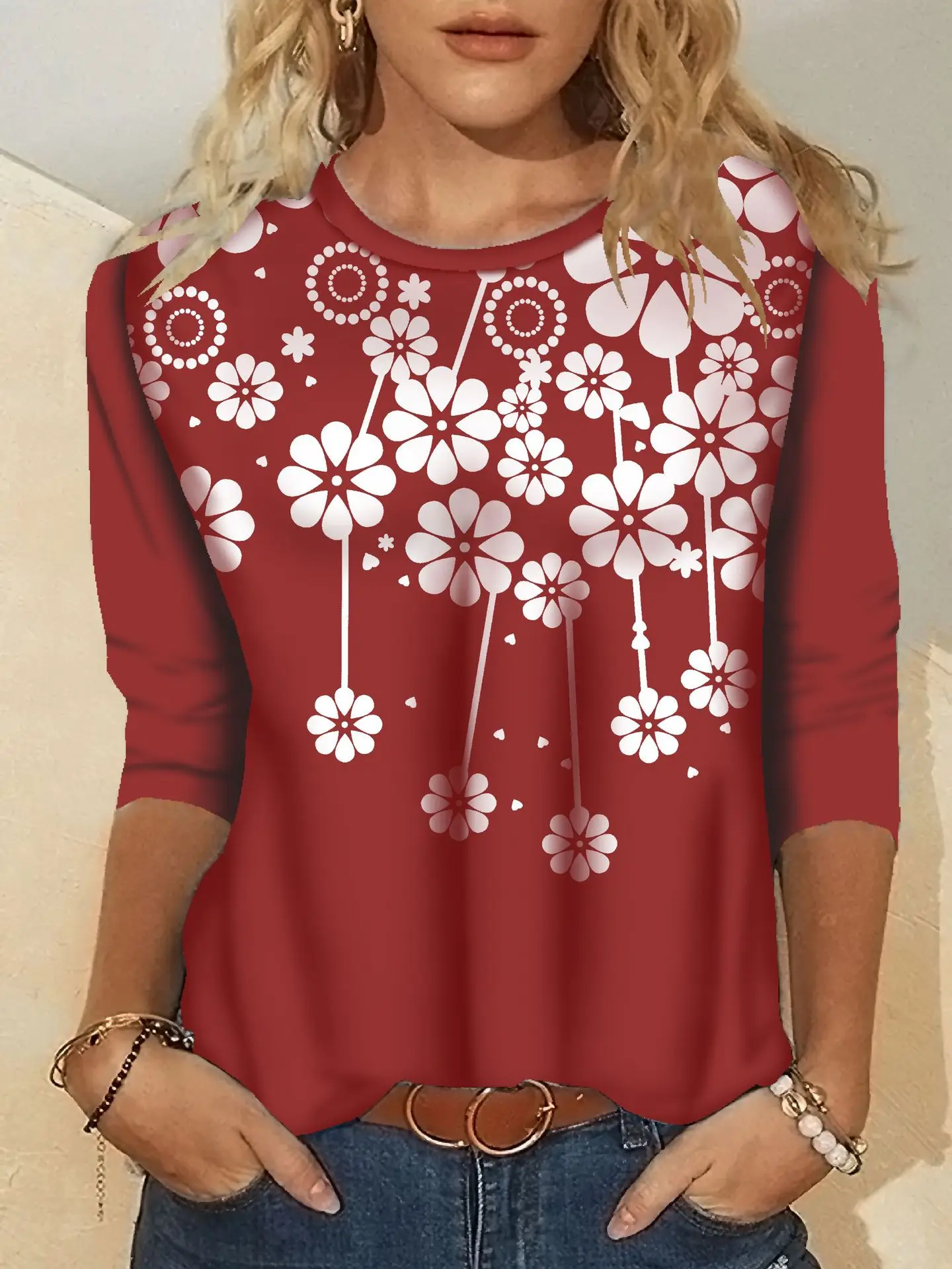 2021 Autumn Long Sleeve Blouse Fashion Casual O-neck Floral Printed Ladies Office Shirts Vintage Loose Elegant Female Street Top
