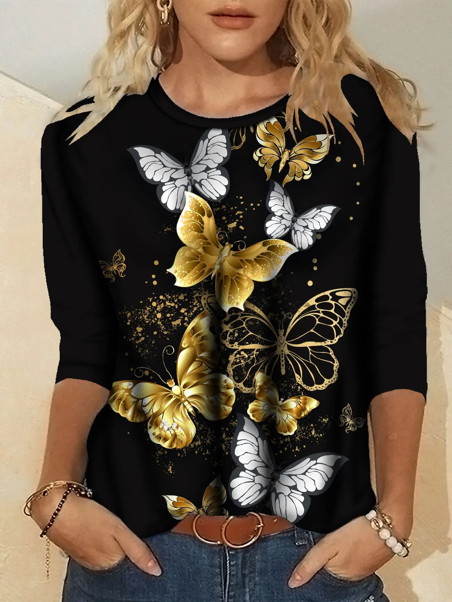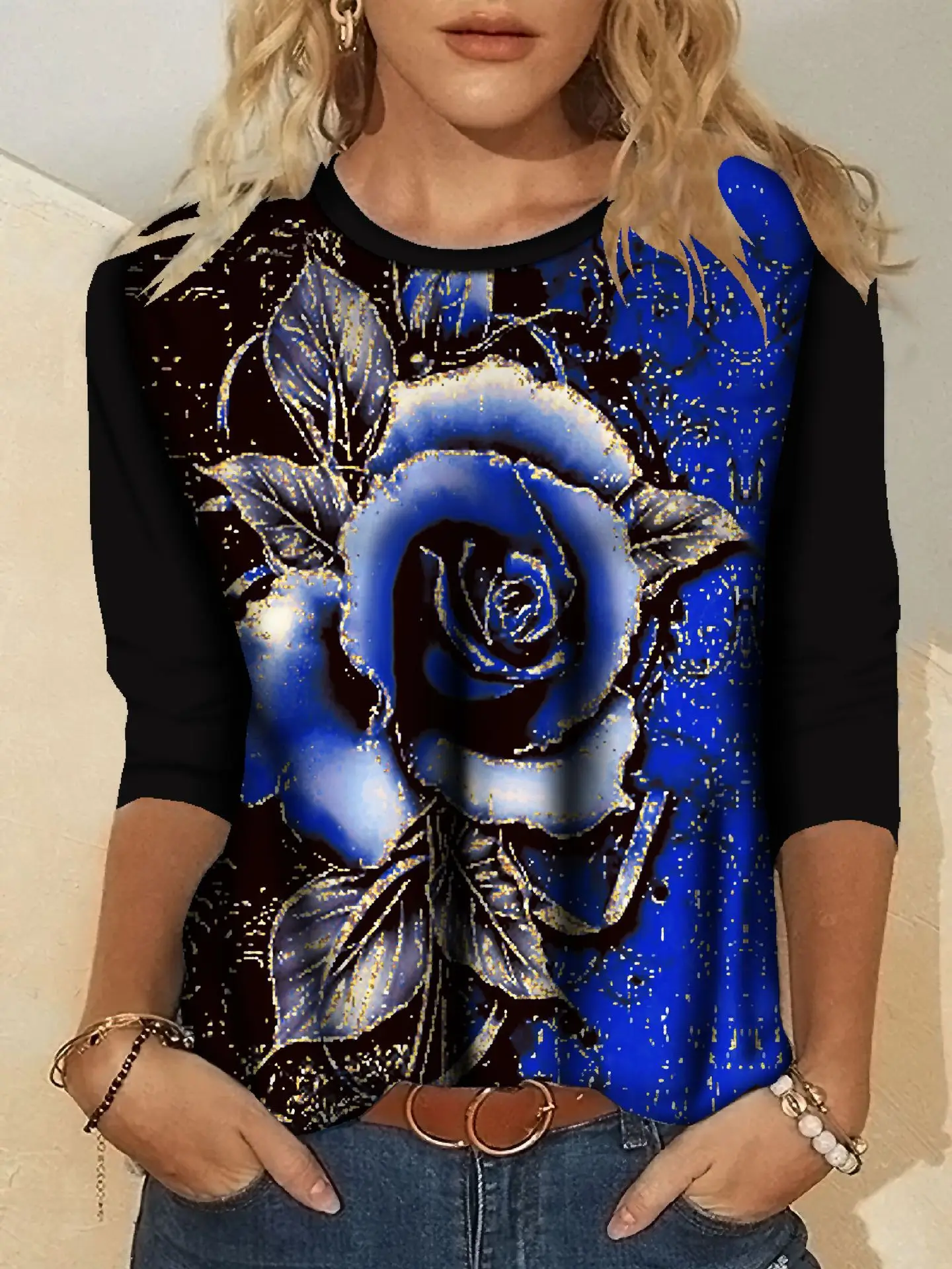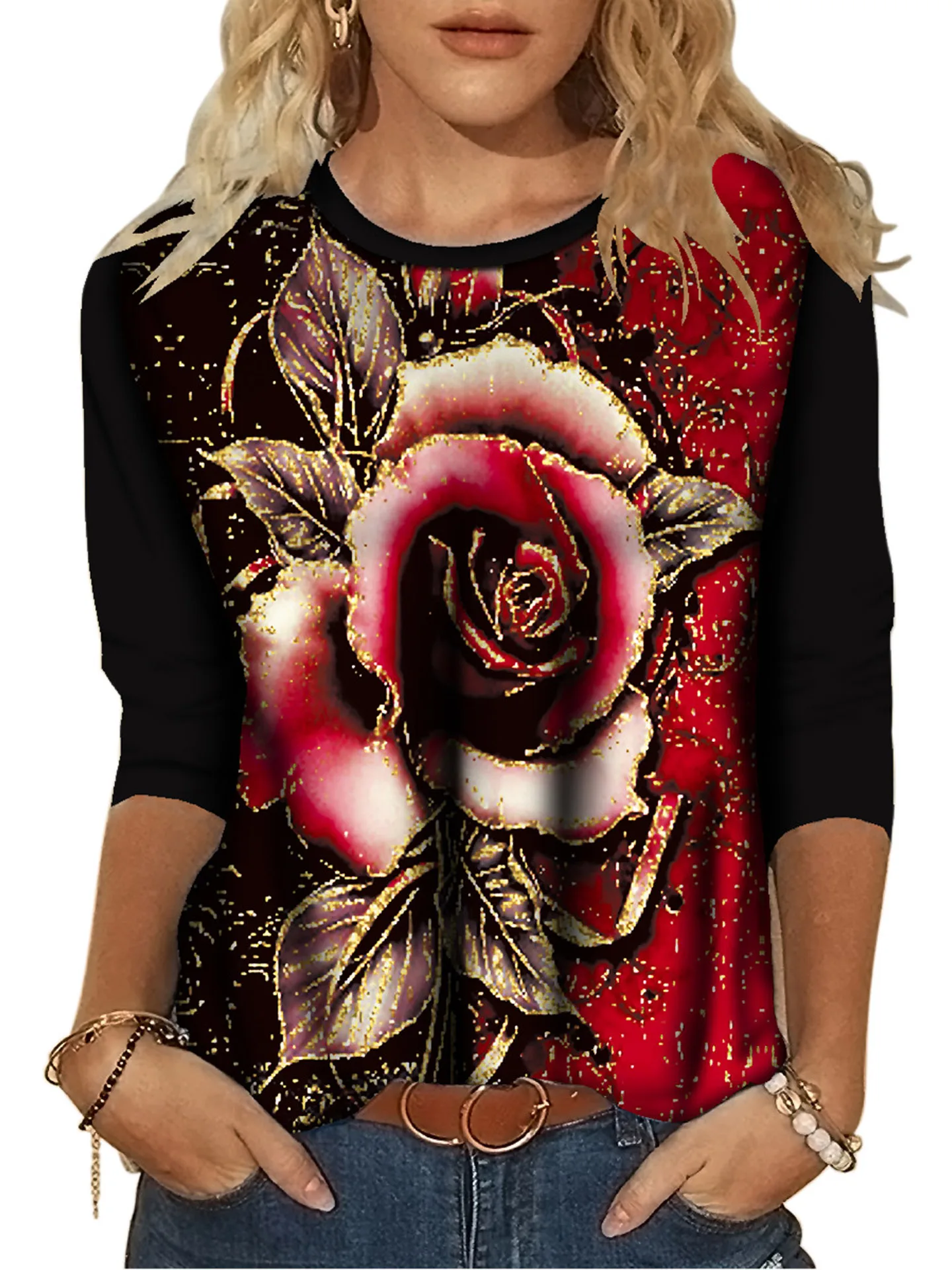 2021 Autumn Long Sleeve Blouse Fashion Casual O-neck Floral Printed Ladies Office Shirts Vintage Loose Elegant Female Street Top