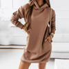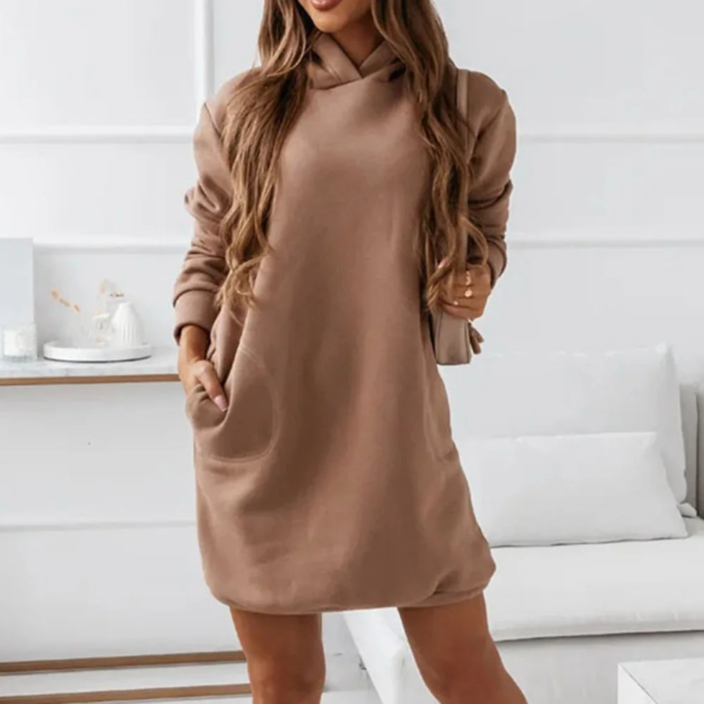 2021 Autumn Winter Pocket Hoodie Dress Women Casual Loose Hooded Shirt Dresses Ladies Solid Drawsting Long Sleeve Sweatshirts