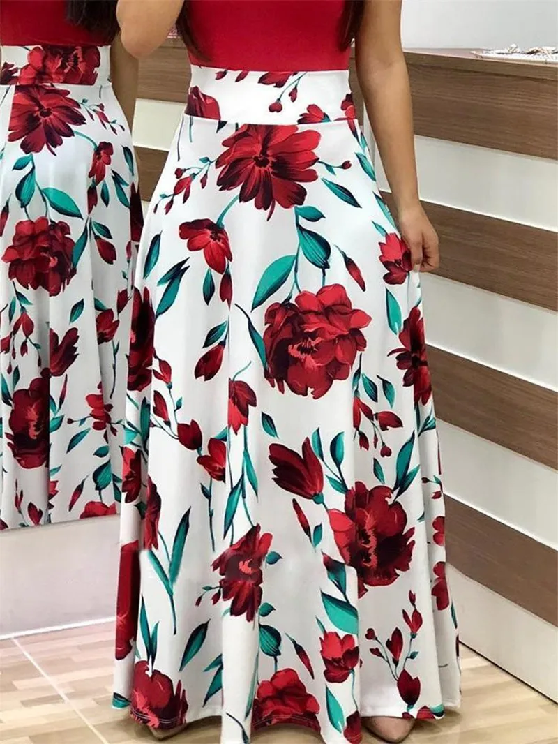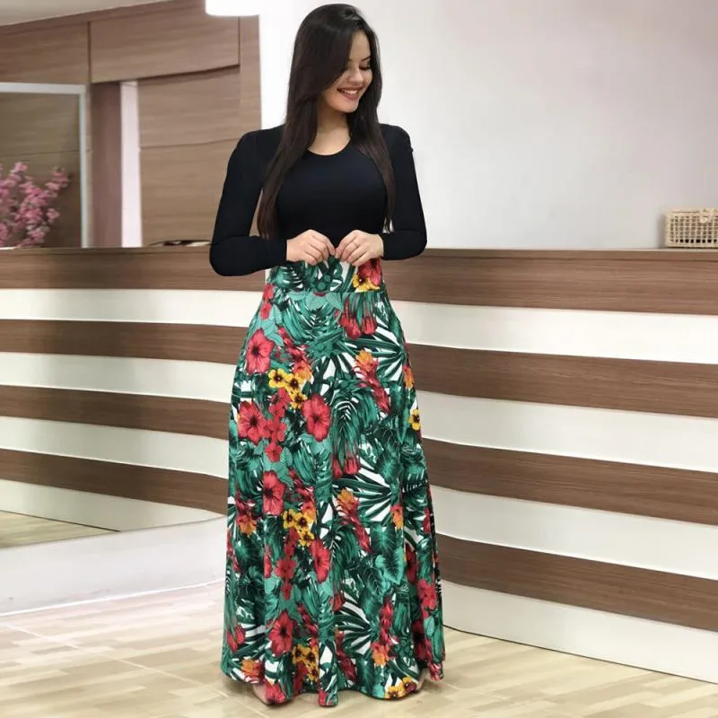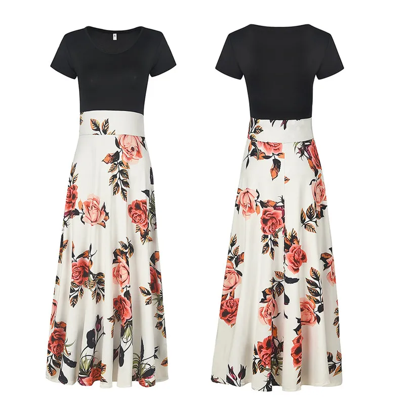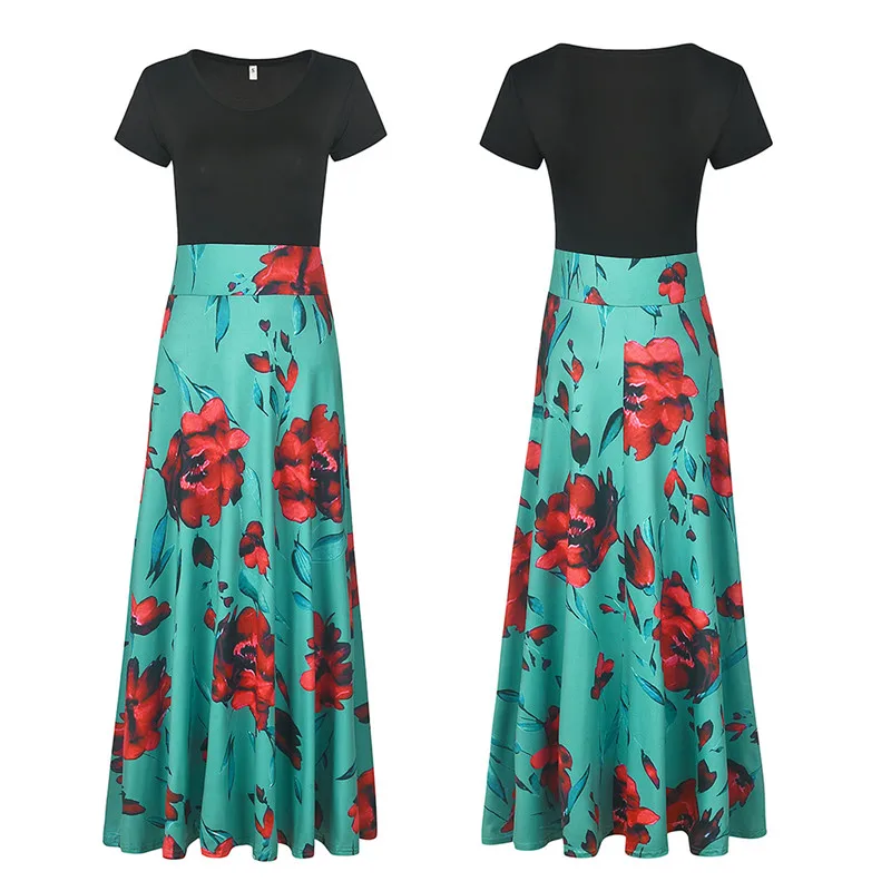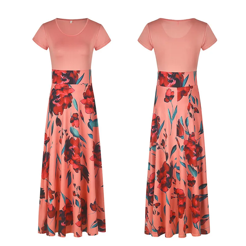 2021 Autumn Women Long Dress Fashion Elegant O-neck Short Sleeve Casual Ladies Party Dresses Vintage Floral Printed Loose Dress