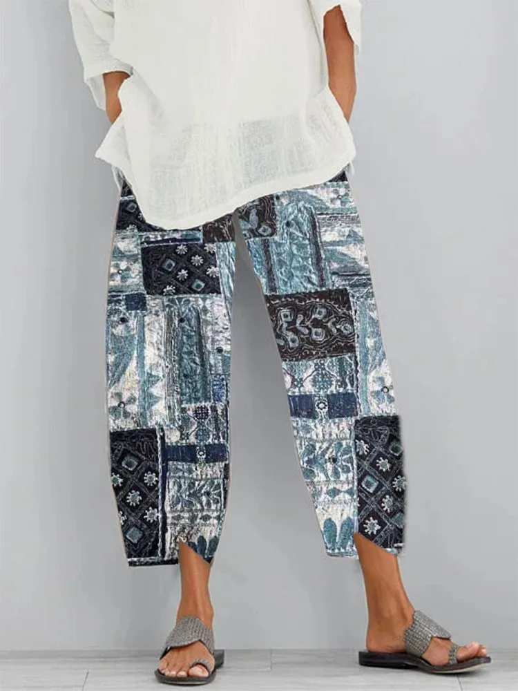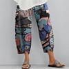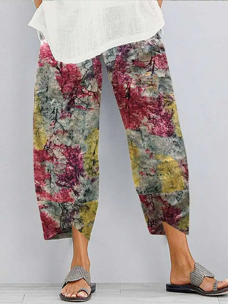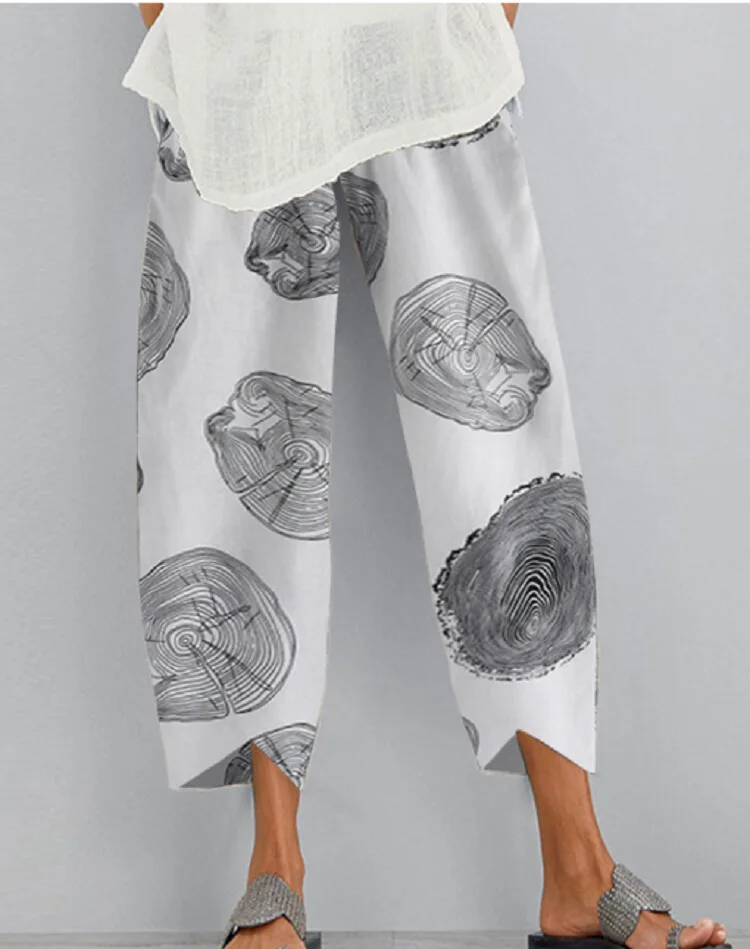 2021 Autumn Women Long Pants Fashion Vintage Printed Graffiti Elastic Waist Wide-Leg Pant Lrregular Pant Casual Loose Lady Pant