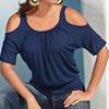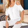 2021 Brand New Womens Strapless T-shirt Polyester Slim Women T shirt Short Sleeve For Female Solid Color Tops Woman T-shirt