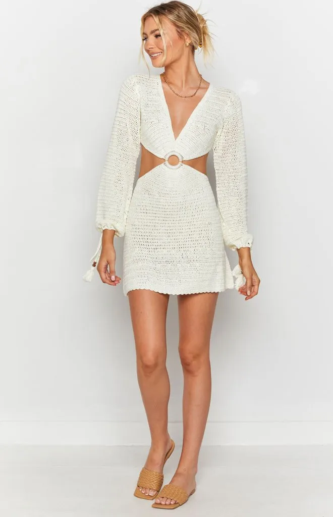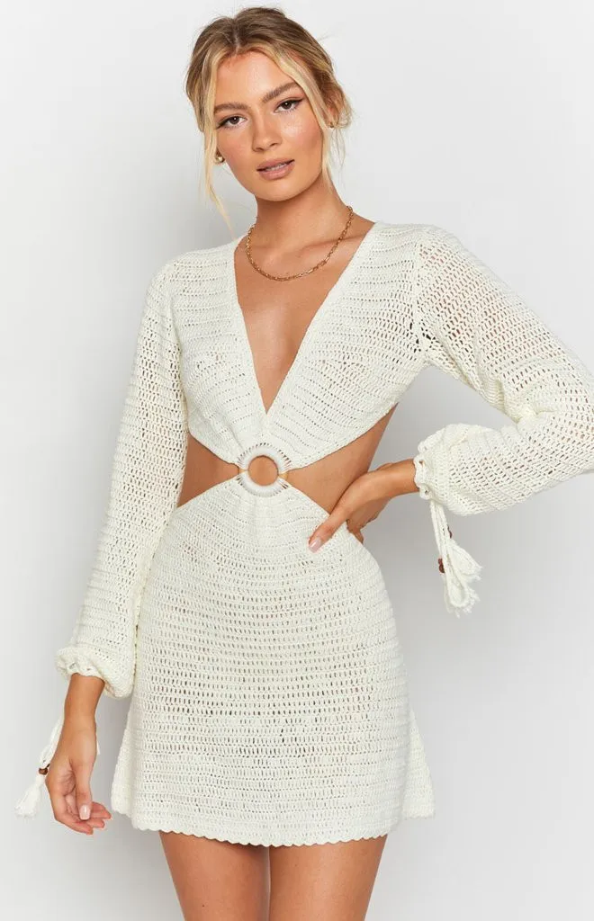 2021 Knit Stripe Long Sleeve Dress Beach Backless Summer Hollow Out Women V Neck Sexy Party Mini Dresses Casual White