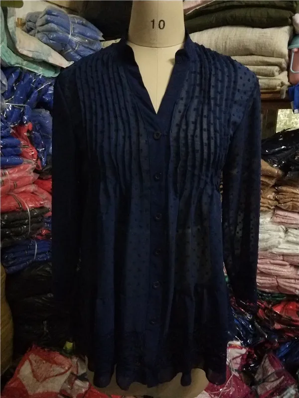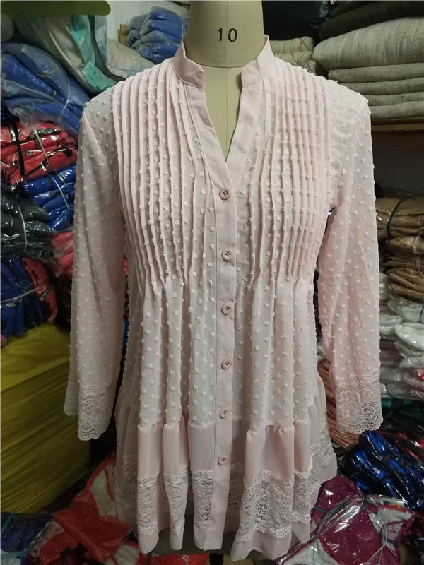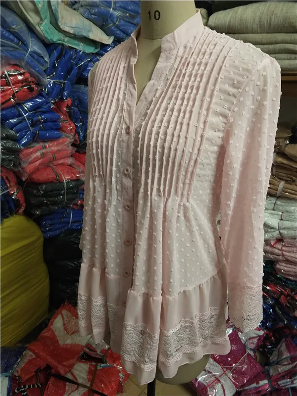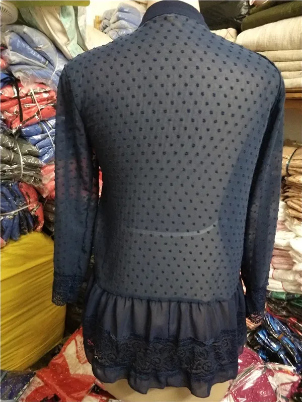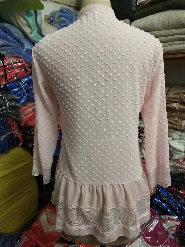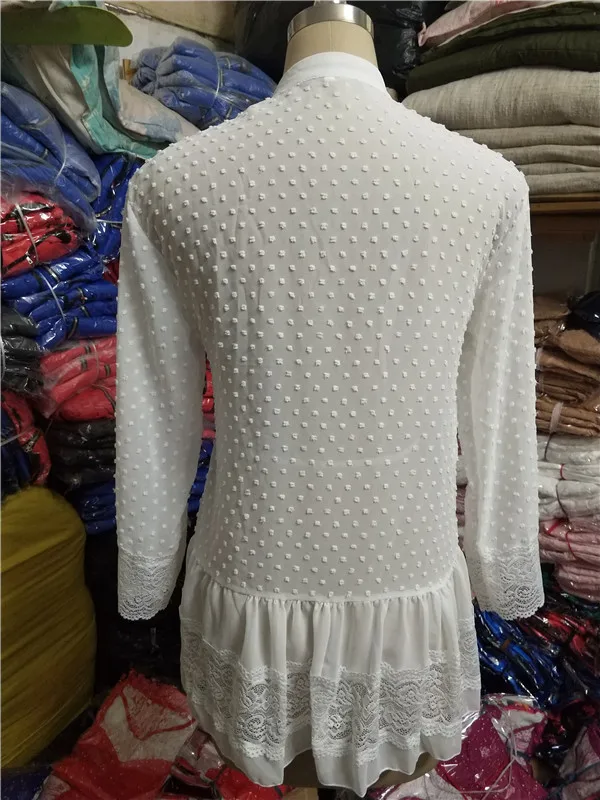 2021 Lace polka-dot splicing comfortable long sleeves loose large size shirt loose casual V-neck top