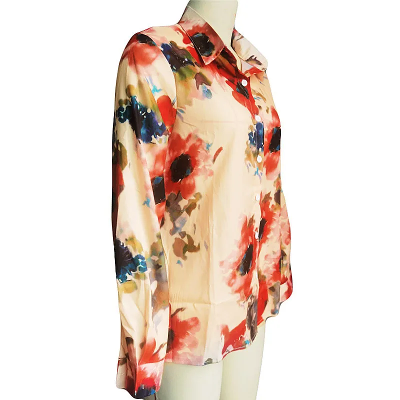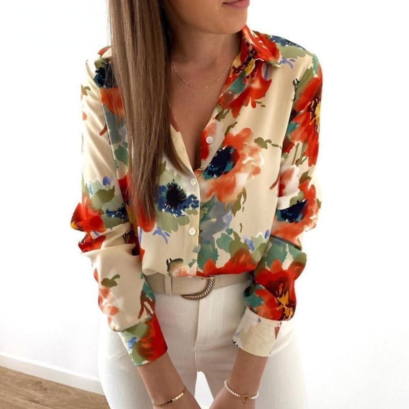 2021 Lapel Blouse Women Fashion Sexy Button Printed Long Sleeve Lady Loose Shirt Autumn Casual Vintage Street Elegant Female Top