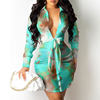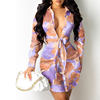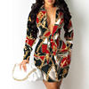 2021 New Long-sleeved Shirt Dress Women Fashion Casual Sexy Turn-down Cardigan Belt Print Lady Party Dress Vintage Elegant Dress