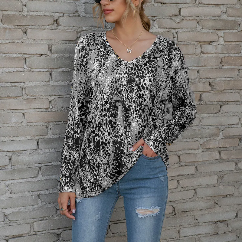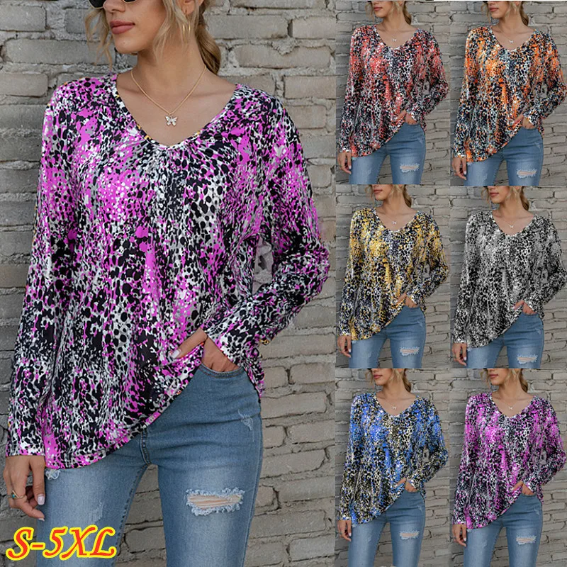 2021 New Spring Blouse Oversized Women Printed Shirt Long Sleeve V-Neck Womens Casual Loose Tee Clothes Ladies Plus Size 5XL Top