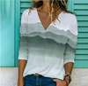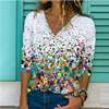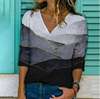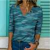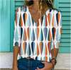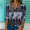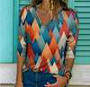 2021 Spring Diamond Color Print Blouse Shirt Women Elegant V-Neck Long Sleeve Top Autumn Casual Loose Plus Size Streetwear Blusa