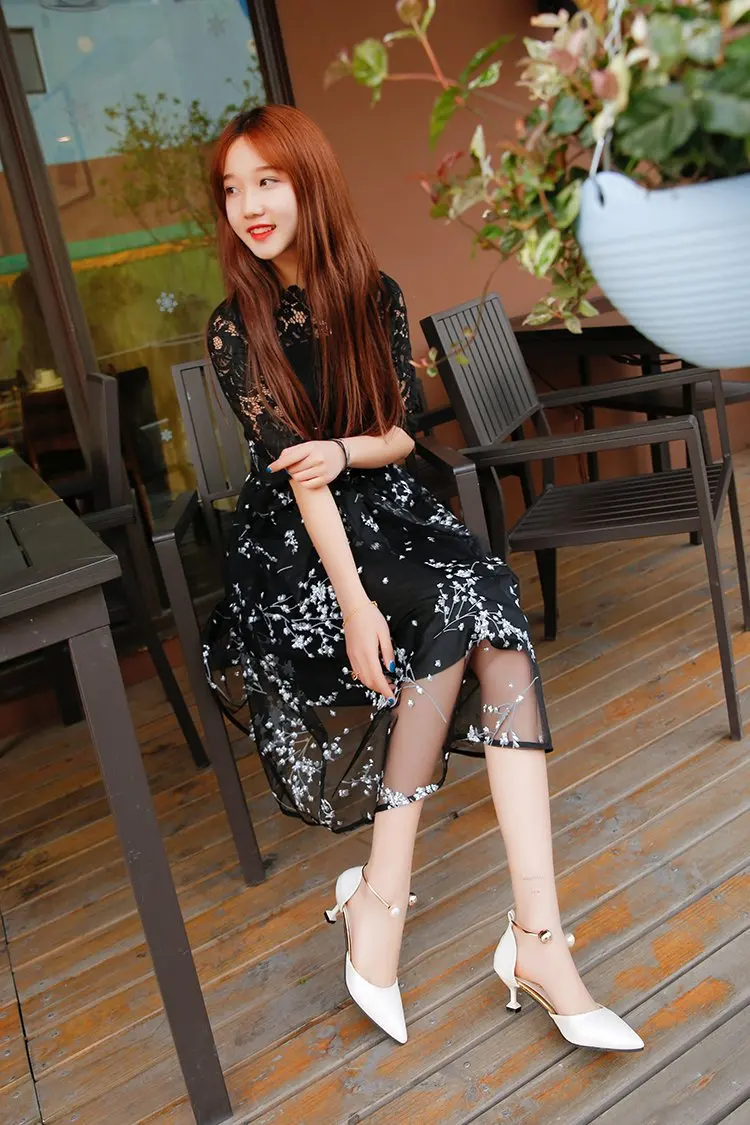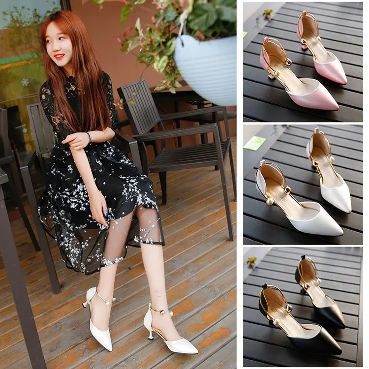 2021 Spring New Fashion Sandals Beaded Stiletto Sandals Shallow Mouth All-match Side Air Sandals Trend Women's Shoes
