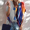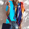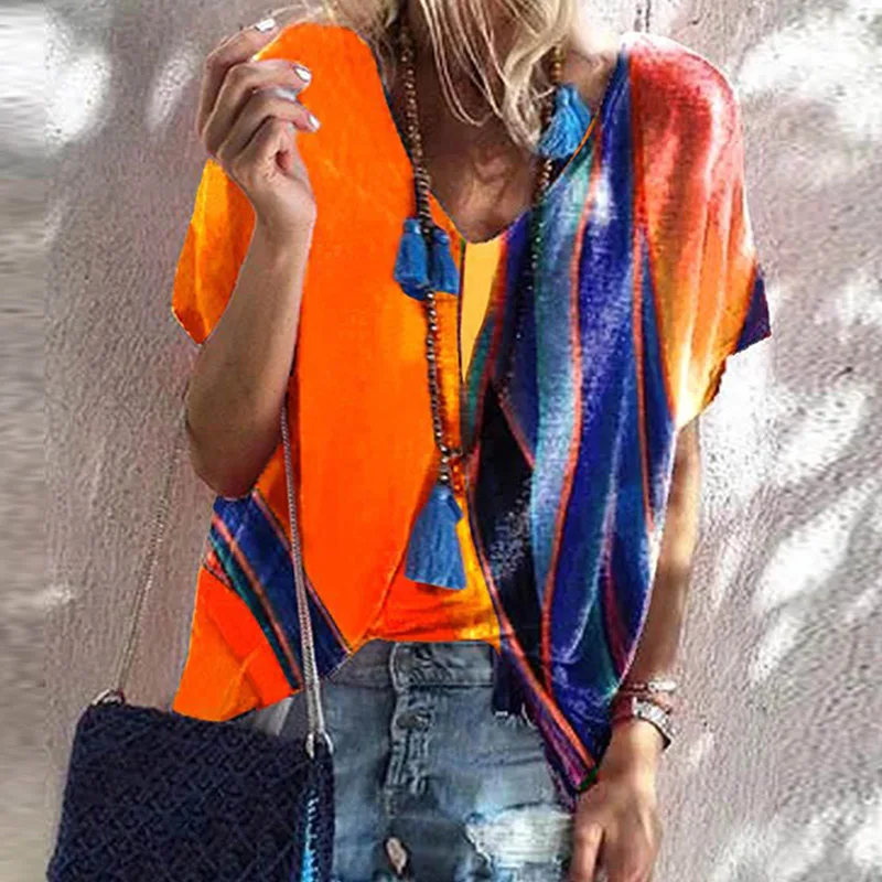 2021 Summer Elegant Colorful Print Patchwork Blouse Shirt Women Fashion V Neck Loose Pullover Tops 5XL Casual Short Sleeve Blusa