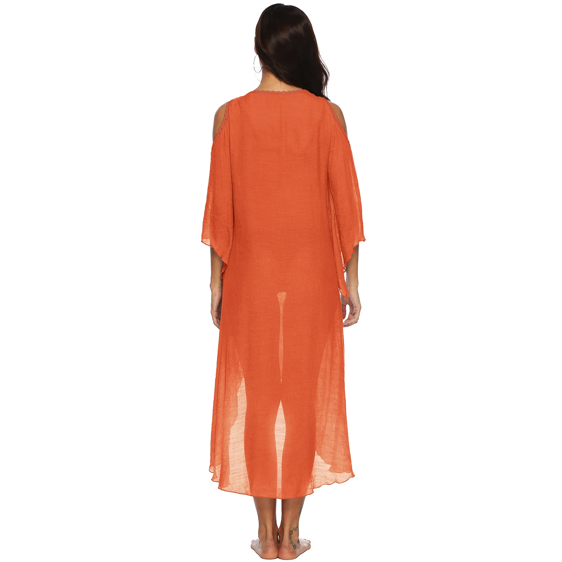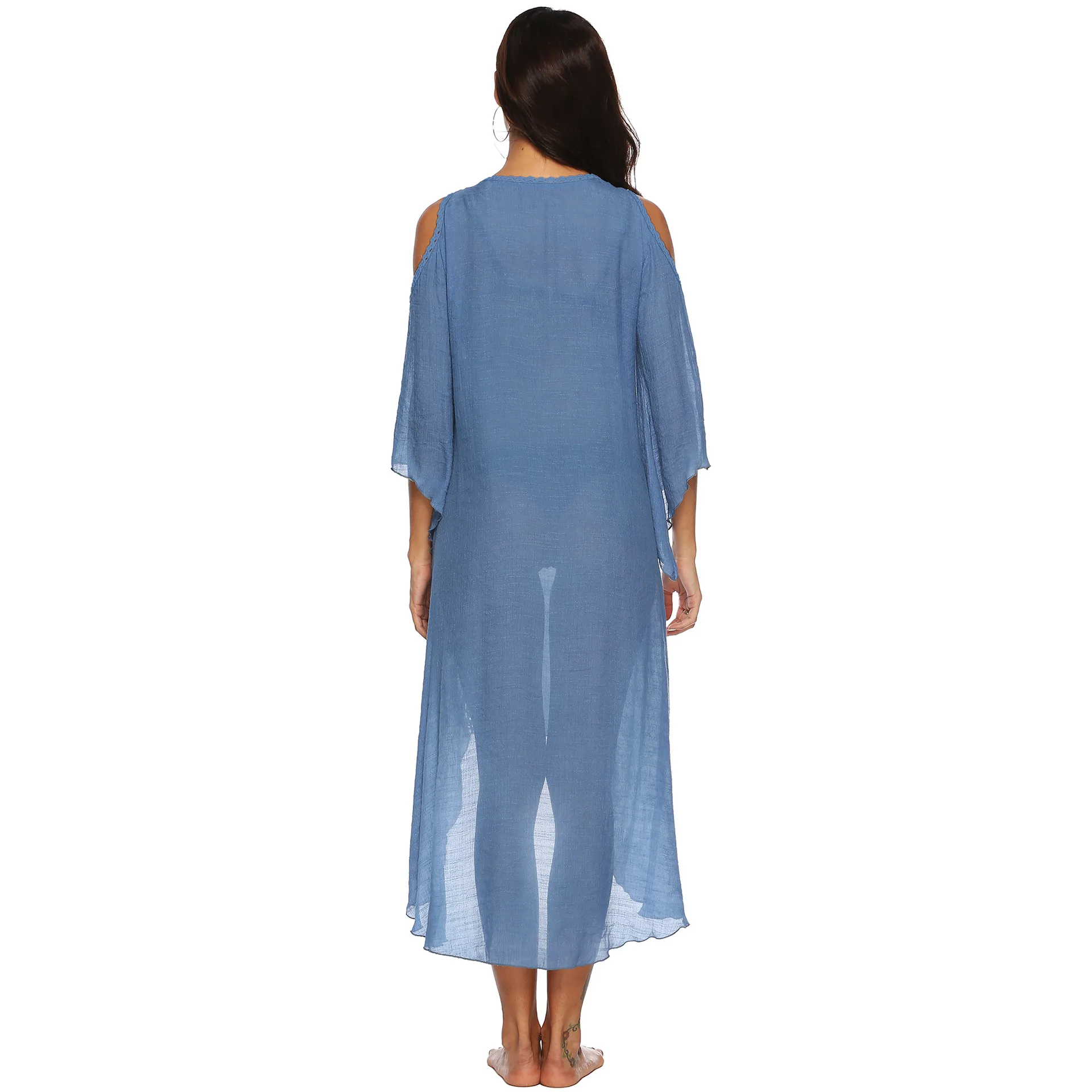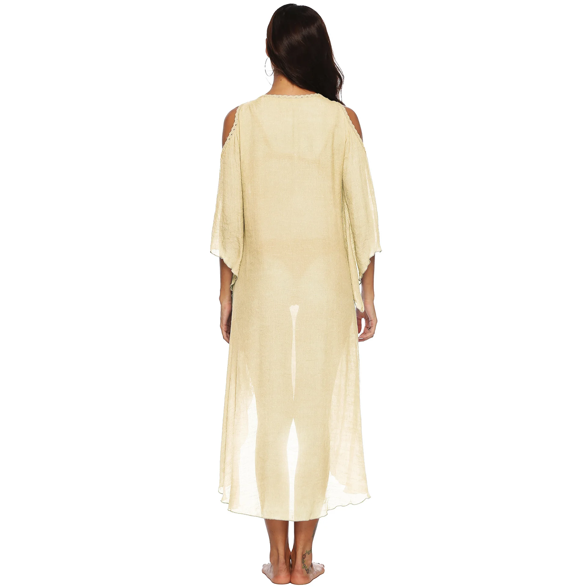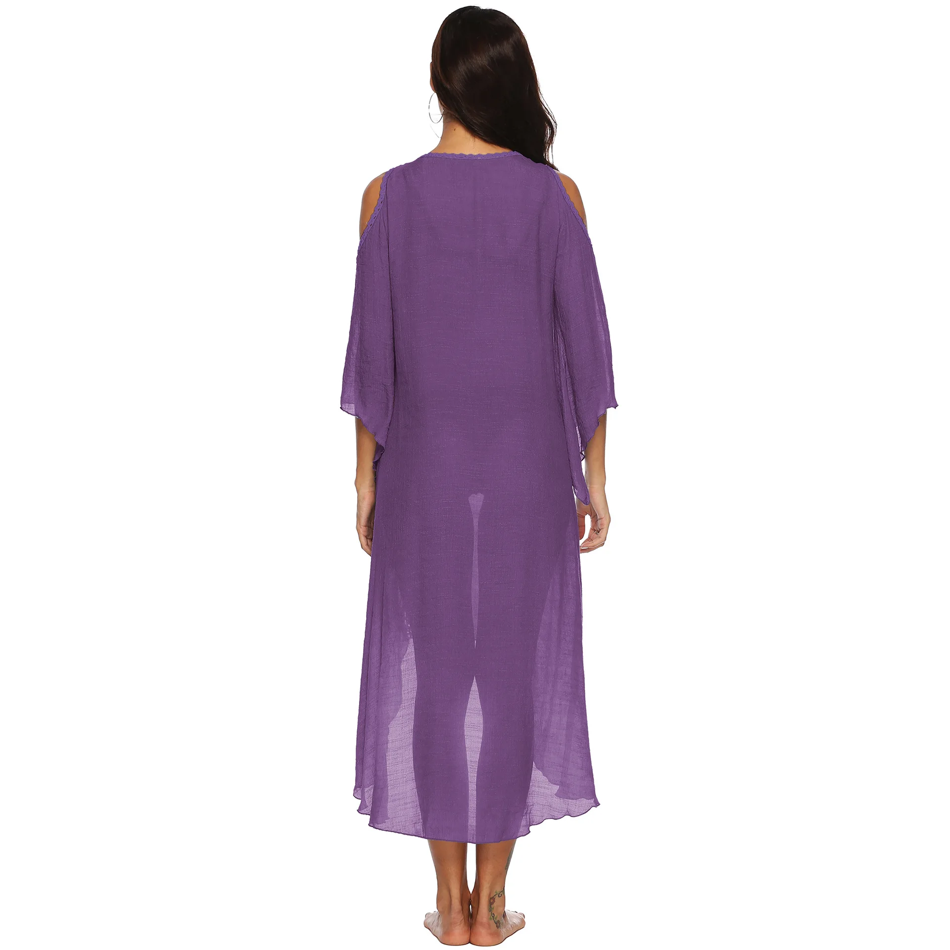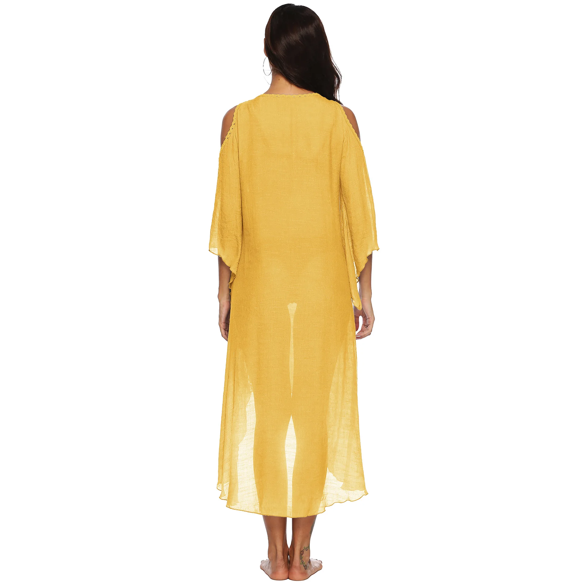 2021 Summer Multicolor Hand Hook Features Splice Shoulder Irregular Beach Smock Dress for Women