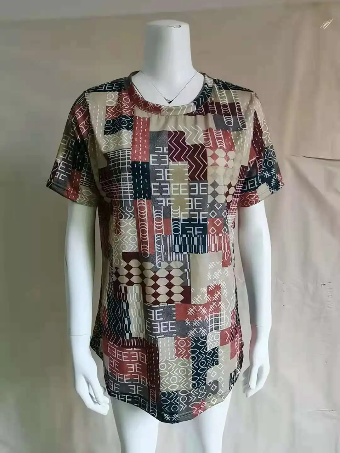 2021 summer new casual fashion women's loose turtleneck comfortable short sleeve digital print T-shirt