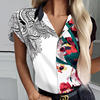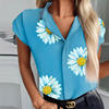 2021 Summer Short Sleeve Blouse Fashion Turn-Down Collar Retro Daisy Butterfly Print Lady Shirt Casual Loose Female Elegant Tops