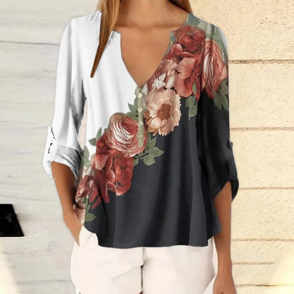 Features: Floral Print/ Scoop Neck/ 3/4 Sleeves Tunics/ Boho Shirts/ Flowy Tops for Women/ Maternity Pregnant Nursing Tops/Casual Loose Shirts/ Chic Style/ Retro and Vintage/ Simple and Plain Pattern