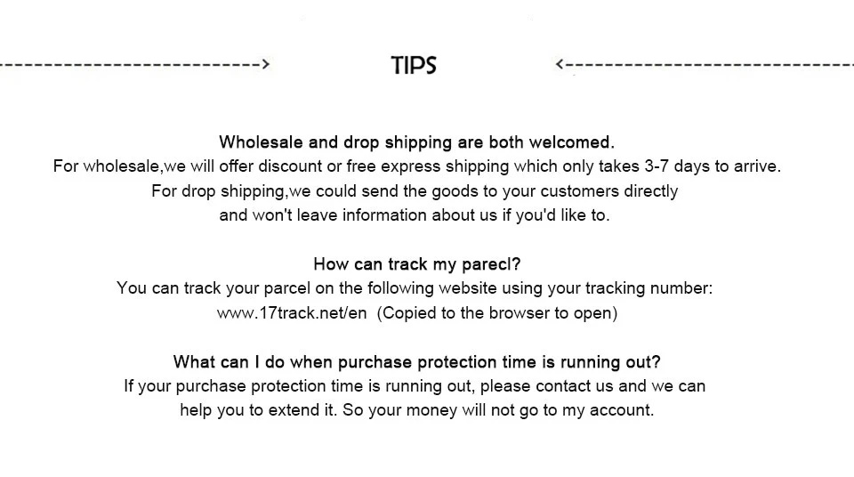 • If you did not receive the product within the guaranteed time( 45 days not including 2-5 day processing) you can request a refund or a reshipment.