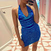 2021 V Neck Knitted Dress Bodycon Blue Women Halter Neck Backless Bandage Summer Beach Sleeveless Sexy Mini Dresses