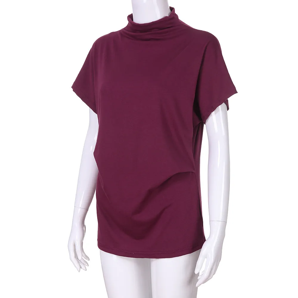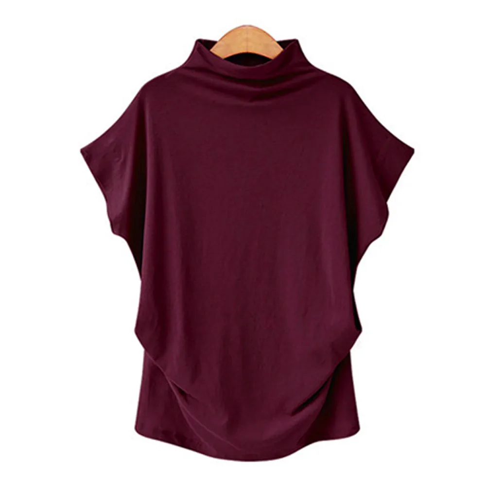 2021 Women Big SizeT-Shirt Summer Women'S Tunics T-Shirt Casual Turtleneck Sexy Blouse Summer Solid Shirts