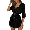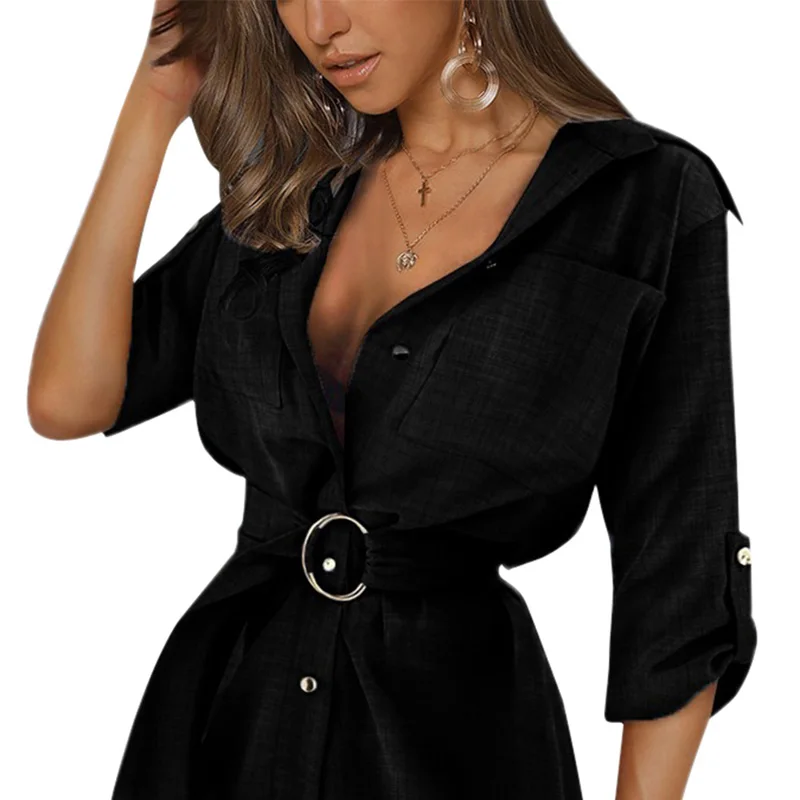 2021 Women Dress Summer Female Cotton Linen Office Lady Fashion Wild V-Neck Solid Color Button Sashes Mini Elegant Clothing