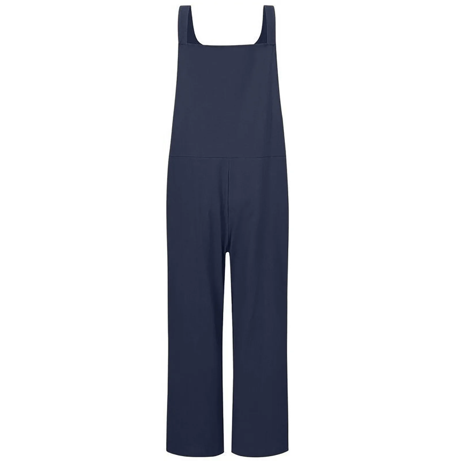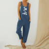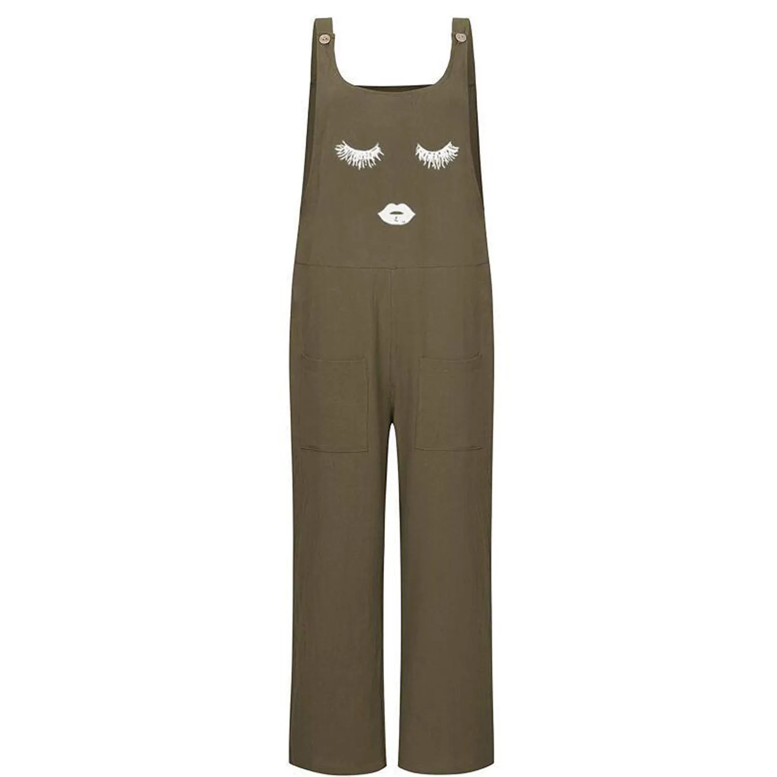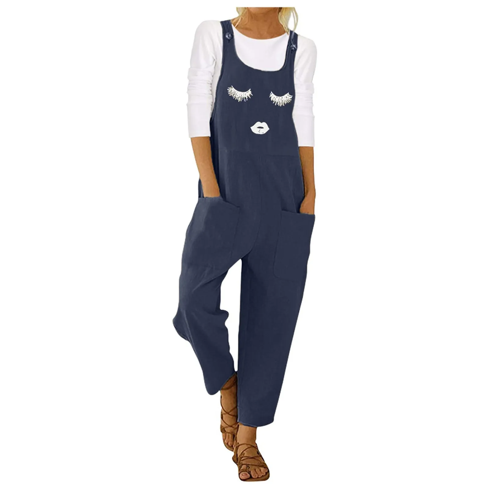 2021 Women Sleeveless Jumpsuits Summer Casual Pocket Overalls Wide Leg Pants Printed Playsuits Fashion Vintage Loose Rompers