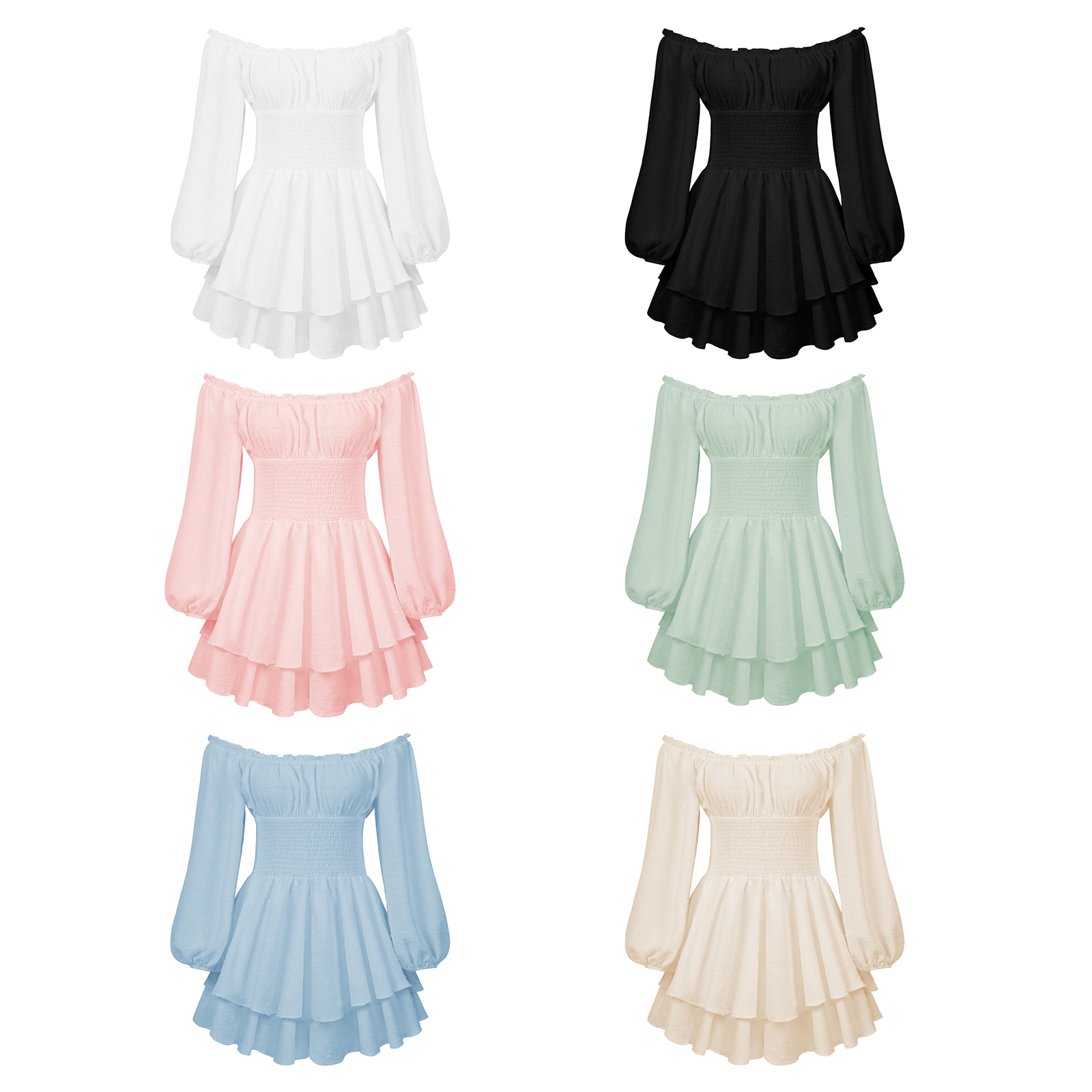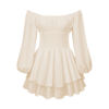 2022-06-23 Kayotuas Ladies Loose Ruched Jumpsuit Summer Women Lace Boat Neck Long Sleeve Elastic Waist Flouncing Bodysuit