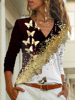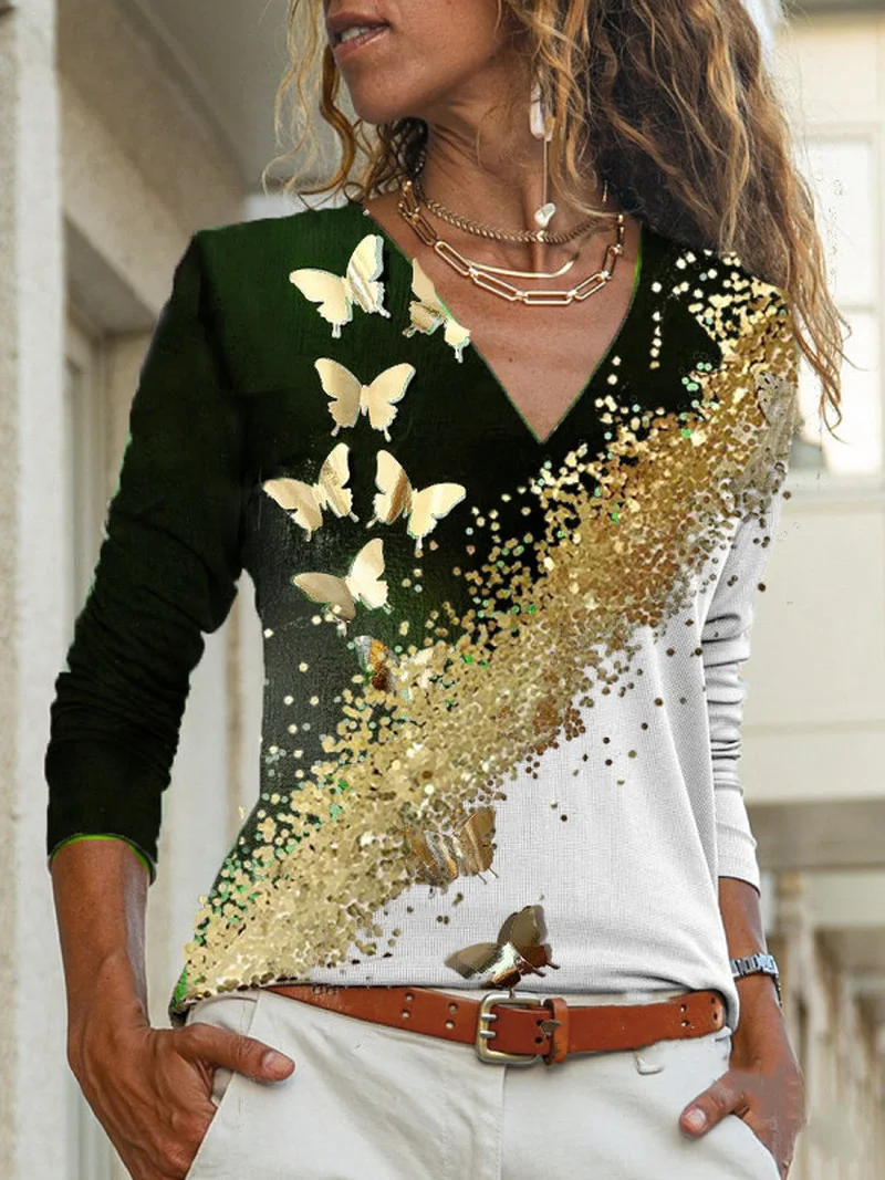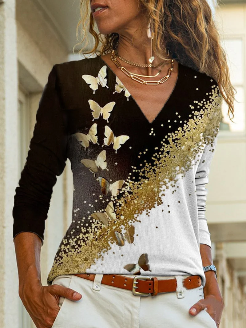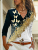 2022 Autumn Butterfly Print V Neck Loose Tee Women Casual Tops Long Sleeve Blouses Sexy Blouse Blusas De Mujer Ladies Tops