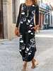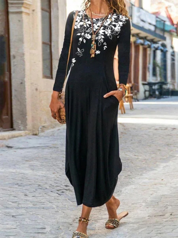 2022 Autumn Long Sleeve Plus Size Women Fashion Loose Casual Floral Print O-neck Pullover Pocket Irregular Party Elegant Dresses
