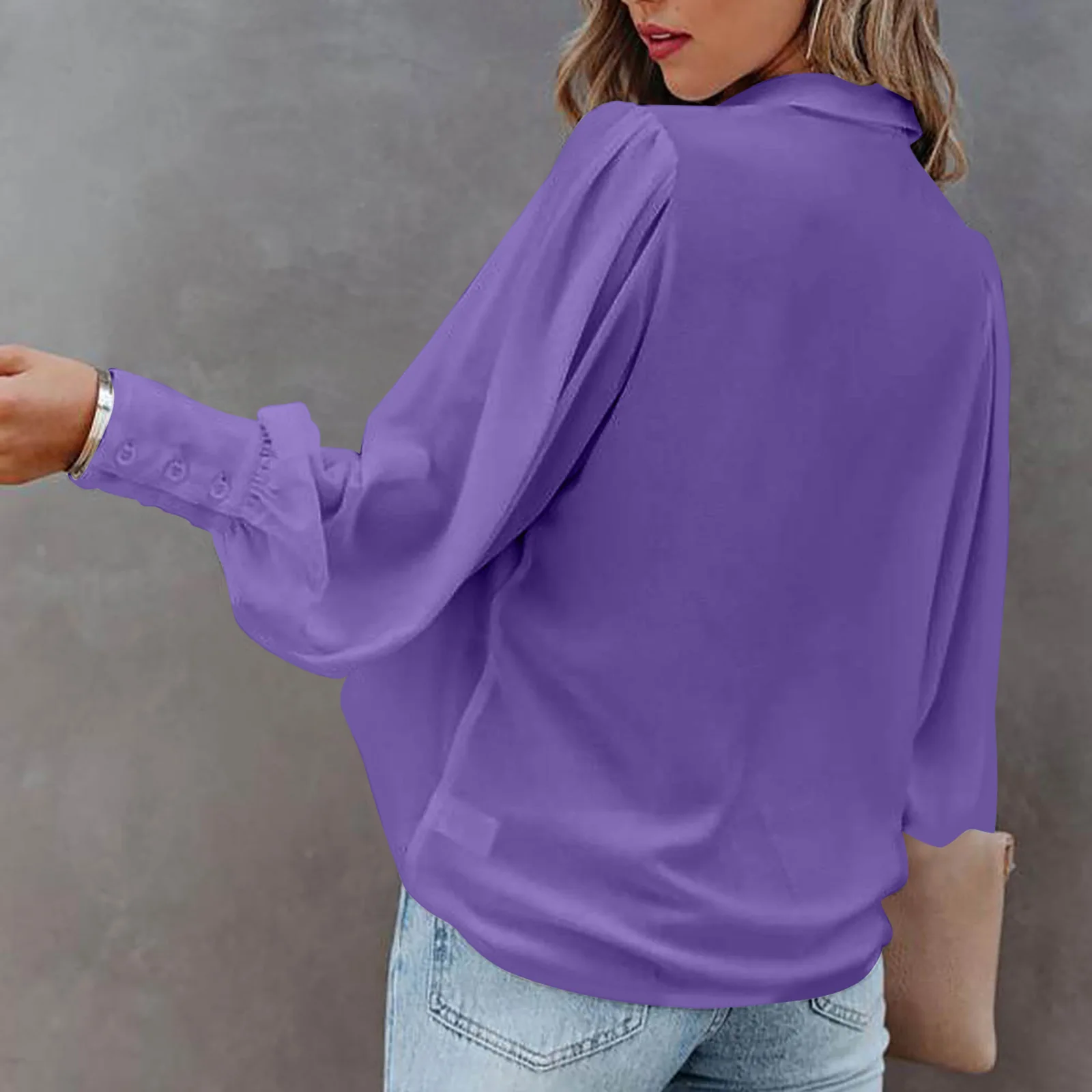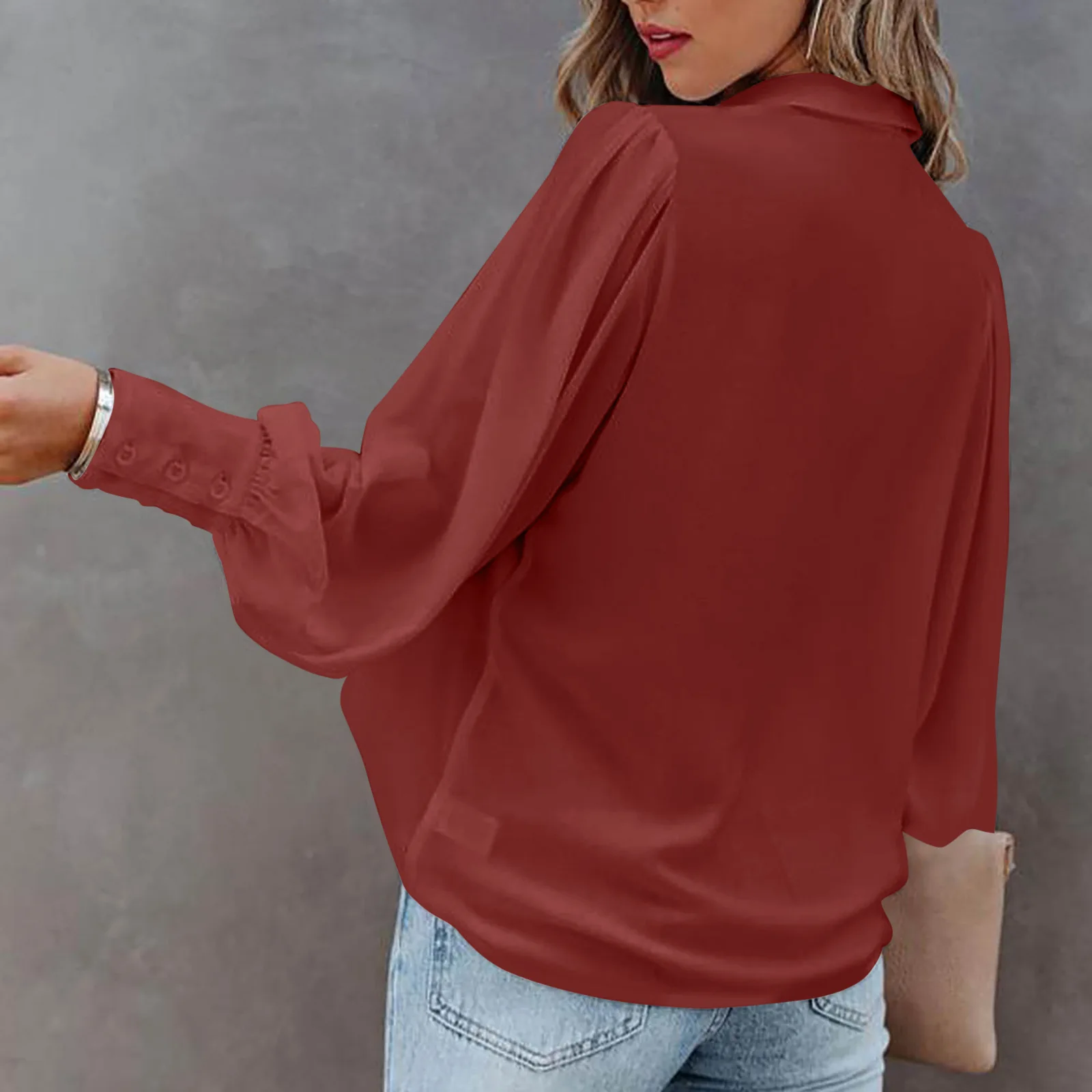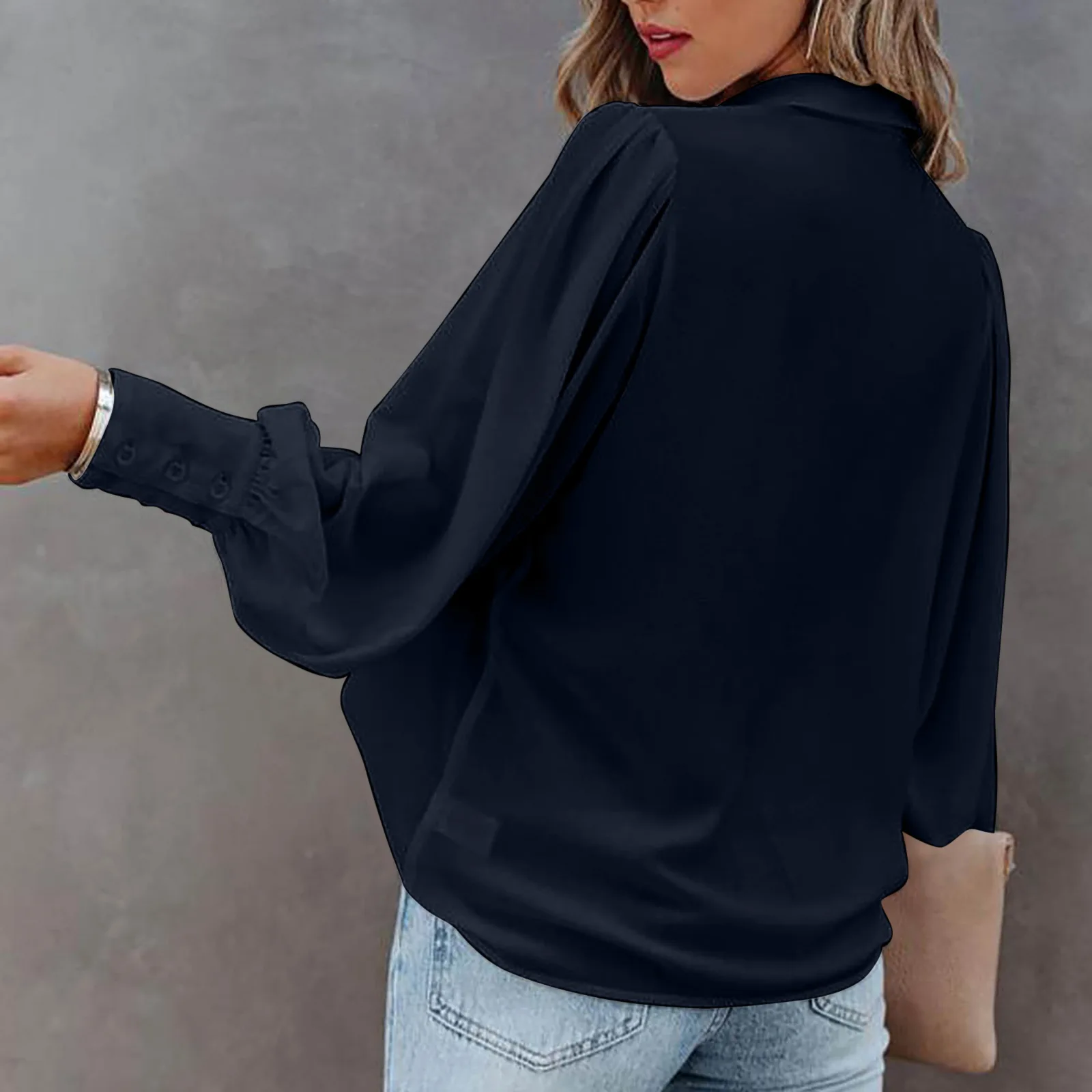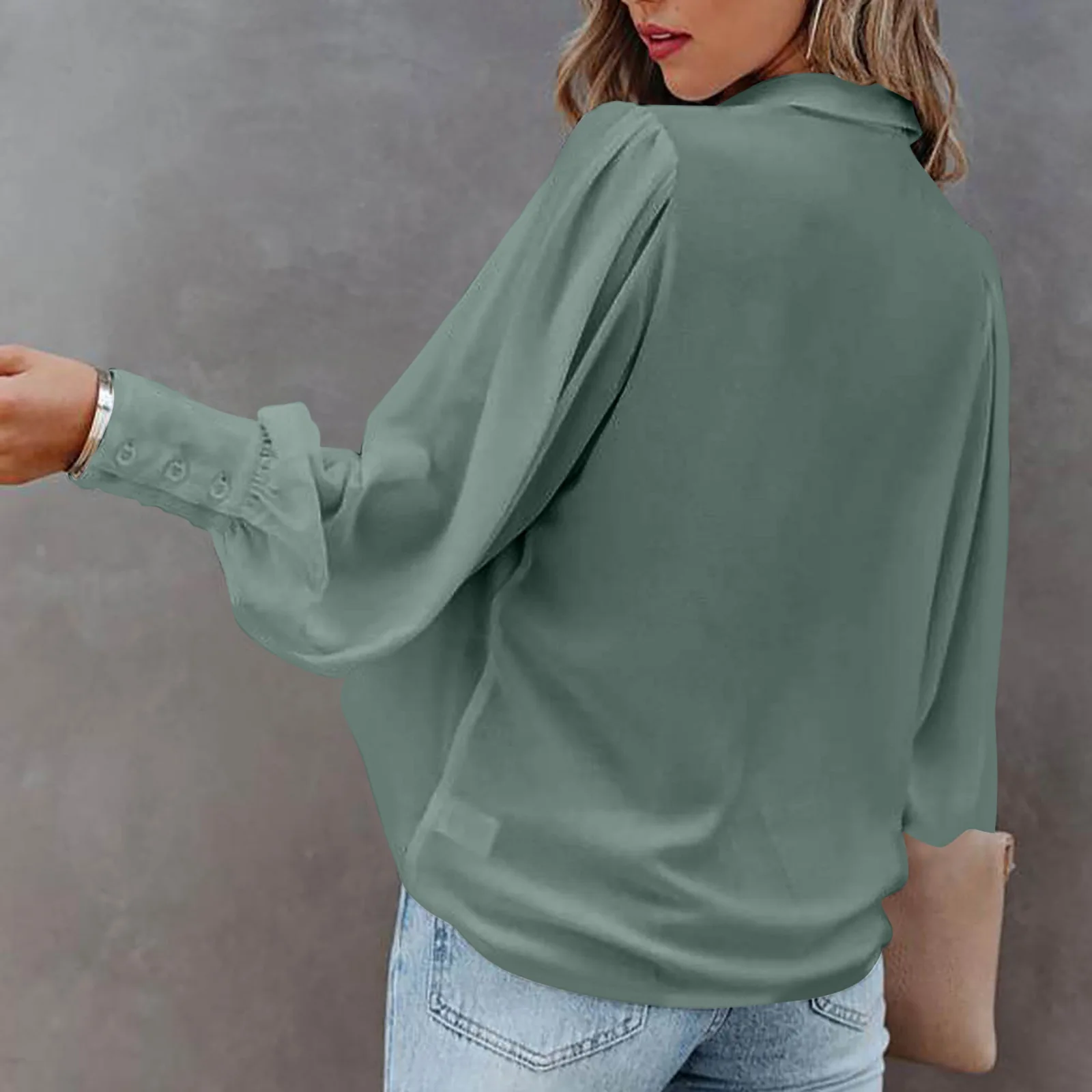2022 Autumn Long-sleeved Button-up Top Lantern Sleeve Pleated Solid Color Stand Collar Loose Shirt Women's Clothing Femme Blusas
