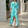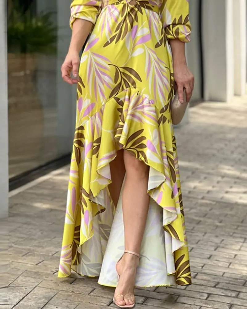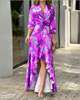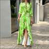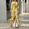 2022 Autumn New Women Printed V-neck High-waisted Long-sleeved Dress Ladies Irregular Splicing Maxi Dress Elegant Party Dresses