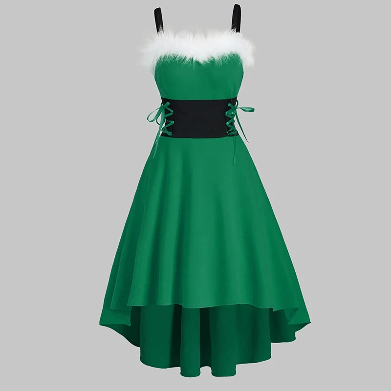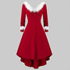 2022 Autumn Winter Fashion Christmas Dress Women Elegant Faux Fur Collar Midi Party Dresses Ladies Casual Asymmetrical Vestidos