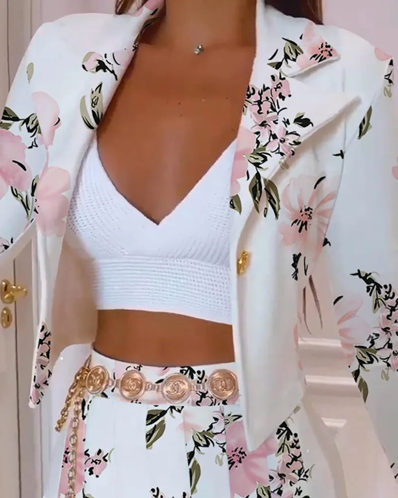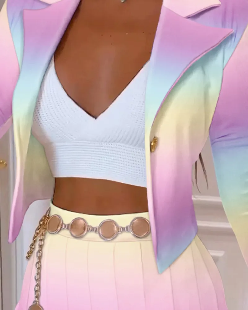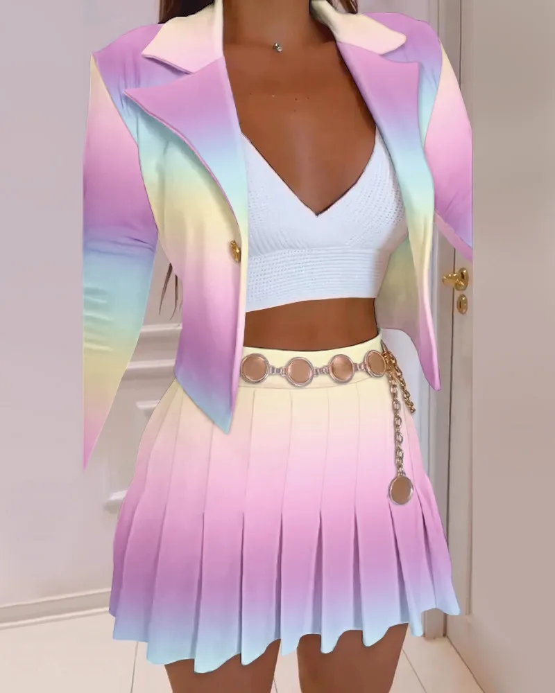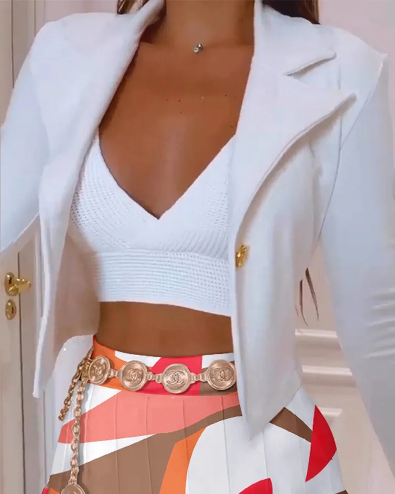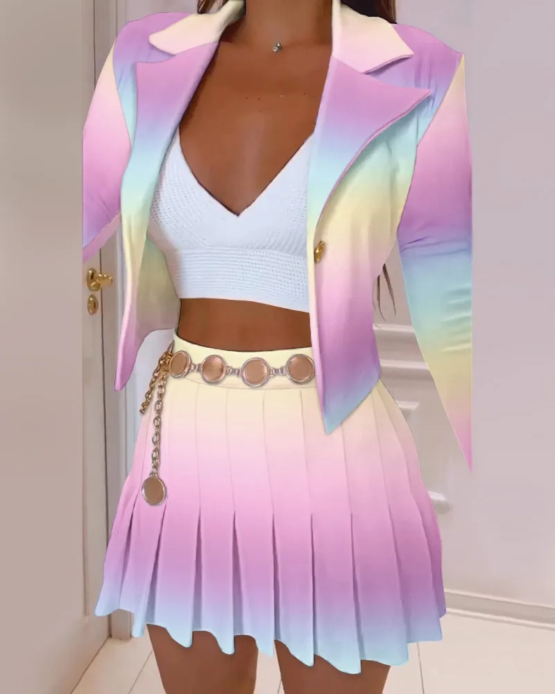 2022 Autumn Winter Long-sleeved Suit Collar Printed Short Blazer And Mini Skirts Two Piece Set For Women Ensemble Femme 2 Pièces